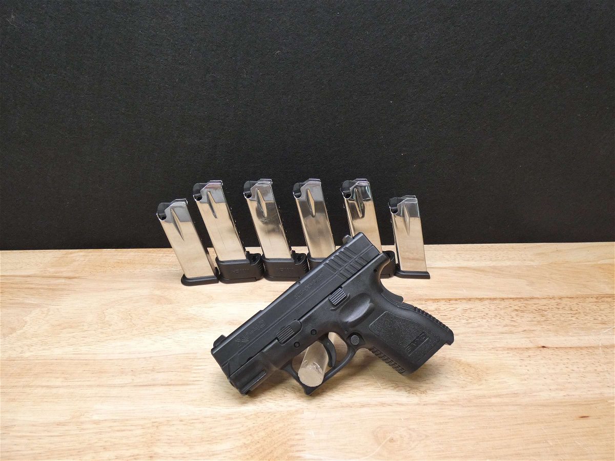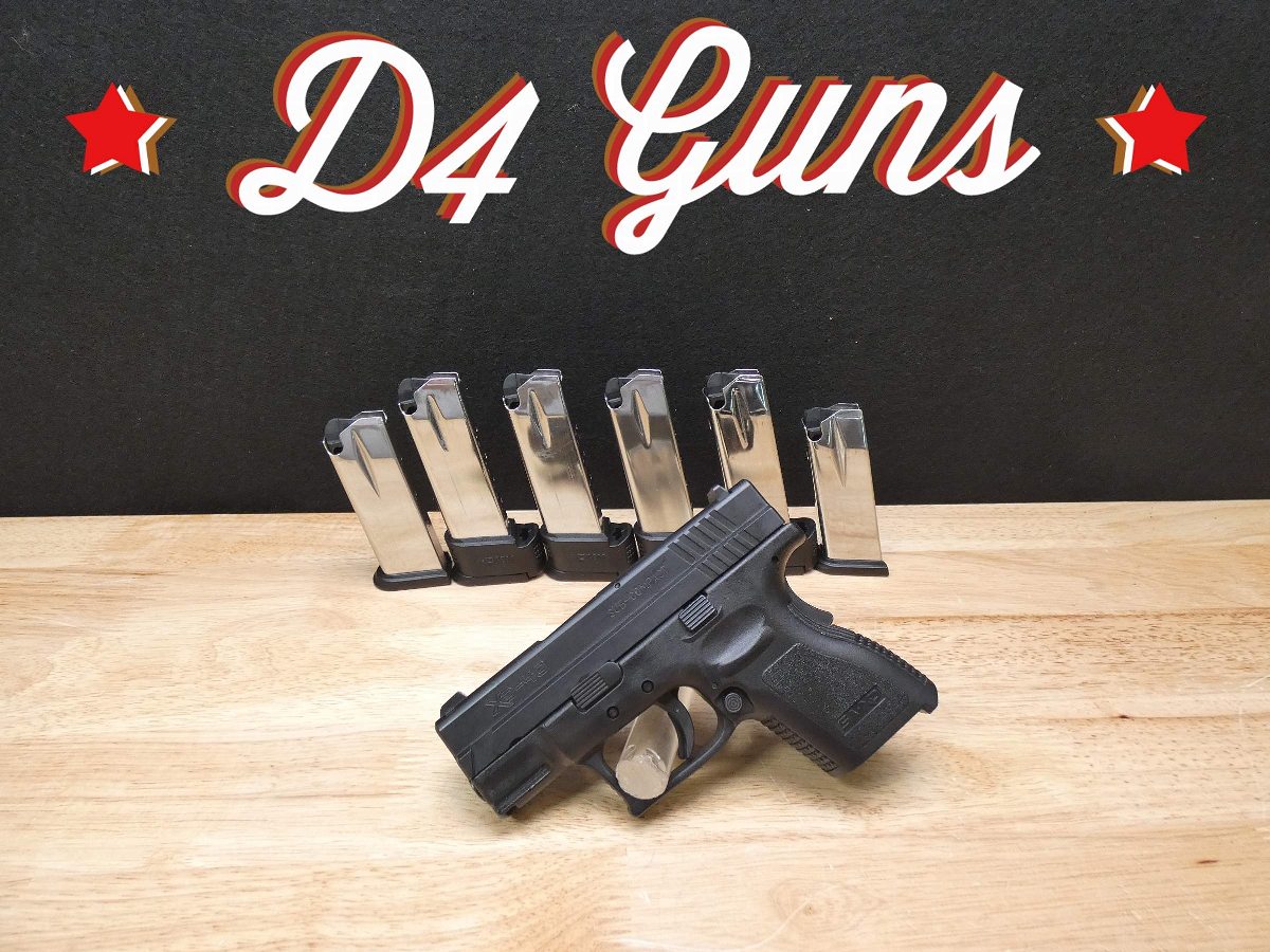 For sale is a Springfield Armory XD-40 Sub-Compact semi-automatic pistol in .40 S&W. Serial number- US281261. This pistol is in great condition and comes with (4) 11 round magazines and (2) 9 round magazines. "The perfect carry gun," the XD-40 SC is ready to be concealed for personal defense. The grip texturing locks the gun into your hand for exceptional recoil management, even in rapid-fire. Featuring the magnificent Springfield Armory Ultra Safety Assurance Action Trigger System, a visible and tactile loaded chamber indicator, and the perfect grip angle for both comfort and control, this XD delivers. The .40-caliber 3" hammer-forged barrel is Melonite treated for wear resistance and high round counts. V2-I3 Barrel Length: 3 Bore condition: Good