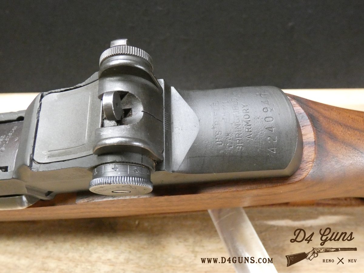 For sale is a Springfield Armory M1 Garand semi automatic rifle in .30 M1/ 30-06 SPRG. Serial number- 4240940. This M1 Garand is in great condition and comes with a leather sling. Little discussion can be had on the subject of American infantrymen in World War Two without the mention of the highly-acclaimed M1 Garand rifle. As the standard infantry rifle of the Second World War GI, the Garand saw combat throughout theaters in Europe with the United States Army and especially in the Pacific with the United States Marine Corps. The M1 Garand served as the standard-issue rifle of the US military during WWII and the Korean War. This particular M1 is a Korea era model being manufactured in 1952. V2-B1 Barrel Length: 24 Bore condition: Good Year Manufactured: 1952