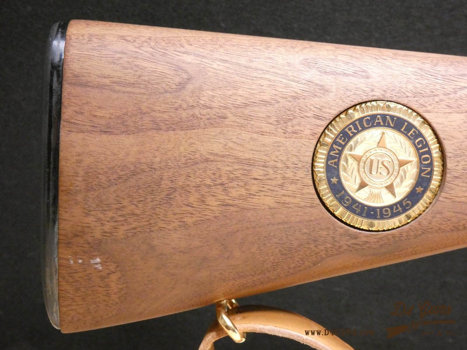 For sale is a Springfield M1 Garand WWII Victory Commemorative by American Legion in .30-06 SRNG. Serial number- 1989058. This rifle is in great overall condition but there are some rust spots on the sights, charging handle, and butt plate. It comes with a leather sling and two M1 Garand clips. The sights and trigger are gold (Paint or cerakote), an American Legion medallion is set in the stock, and a plaque the says "T5,Arvel C.Pearson #39484120 2/8/43-10/15/46. The receiver dates to 1943. This special edition M1 Garand would make a great addition to a WWII collection. V2-B4 Barrel Length: 24 Bore condition: Good Year Manufactured: 1943