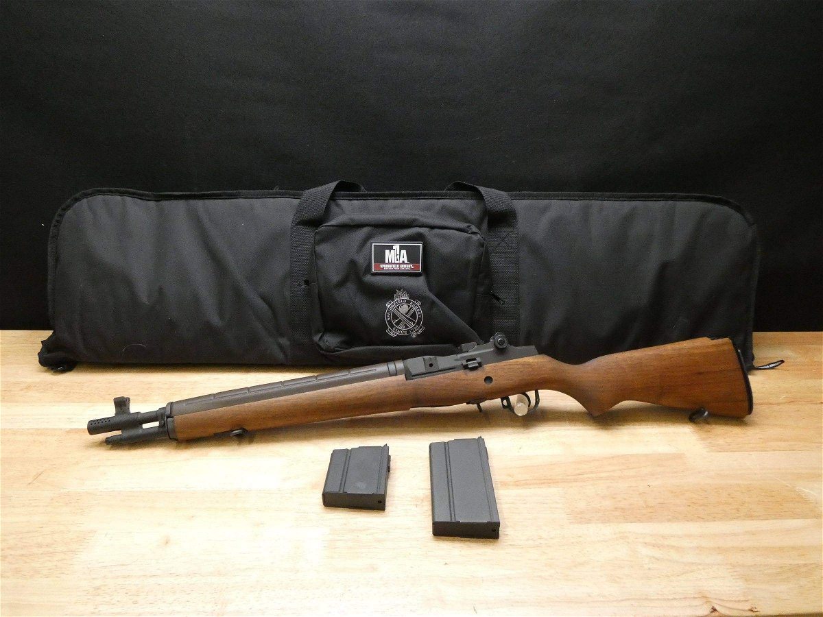 For sale is a Springfield M1A Tanker semi-automatic rifle in .308 Win. Serial number- 454690. This Springfield M1A is in excellent condition and comes with (1) 10 round and (1) 20 round magazines, and a Springfield M1A softcase. This rifle draws its inspiration from the prototype T26 Tanker Garand developed toward the end of World War II. The Springfield M1A Tanker combines paradigm-shifting defensive features like a tritium-powered front night sight and ghost ring rear aperture with the inimitable timeless appeal of quality stained walnut. The M1A Tanker is a maneuverable and compact rifle, featuring a 16" parkerized barrel, nearly ten inches shorter than the M1A standard model, for quick-handling in close quarters. The package comes in at less than 9 lbs. With the compact yet powerful M1A Tanker you’ll always have enough gun.