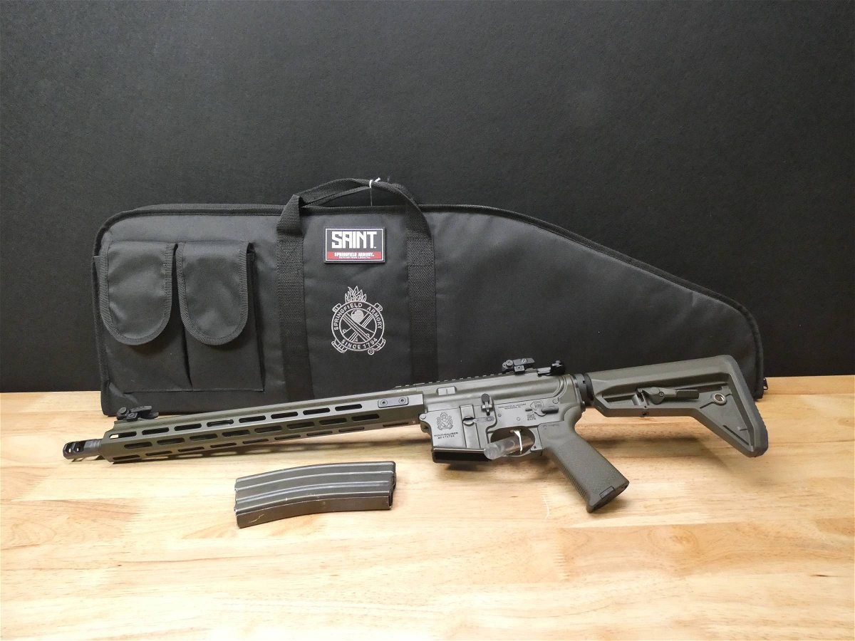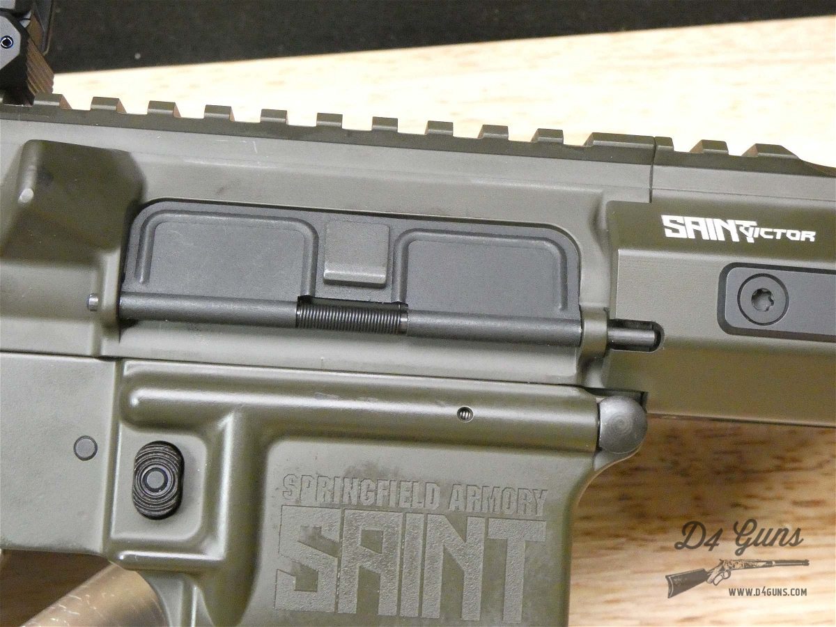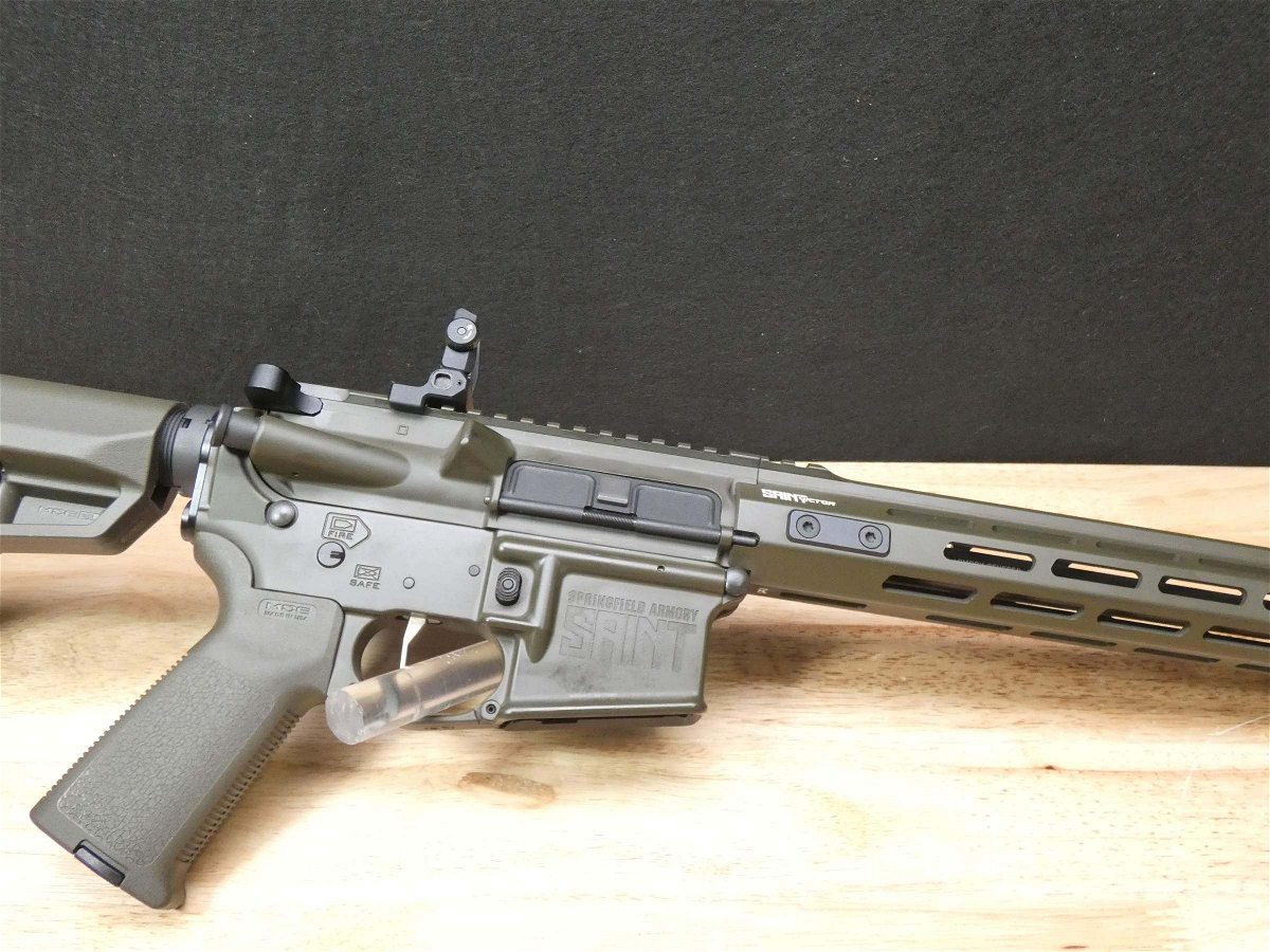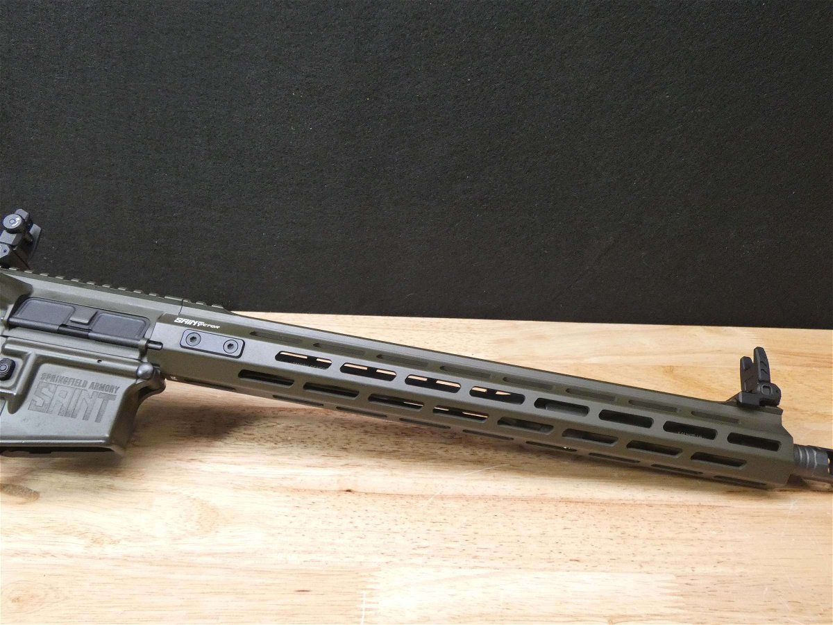 For sale is a Springfield Saint Victor semi-automatic rifle, multi-chambered in 5.56 NATO/ 223. Serial number – ST470794. This rifle is in great condition and comes with original soft case and (1) 30 round steel magazine. This Saint Victor has an OD Green finish with matching OD Green Magpul furniture. The Springfield Saint Victor rifle is "purpose built" and features a full-length 15 inch M-LOK rail to accommodate modern shooting styles, providing comfort for those who shoot with a thumb-over grip. An enhanced, nickel boron coated single-stage flat trigger ensures a grit-free pull for consistent accuracy. The Saint Victor Rifle comes outfitted with SA spring-loaded flip-up iron sights that are adjustable for windage and elevation. Also featured on this rifles is a newly designed SA muzzle brake eliminates barrel rise and softens recoil. Put your money where it matters, get a Springfield Saint Victor. V1-I1 Barrel Length: 16 Bore condition: Excellent