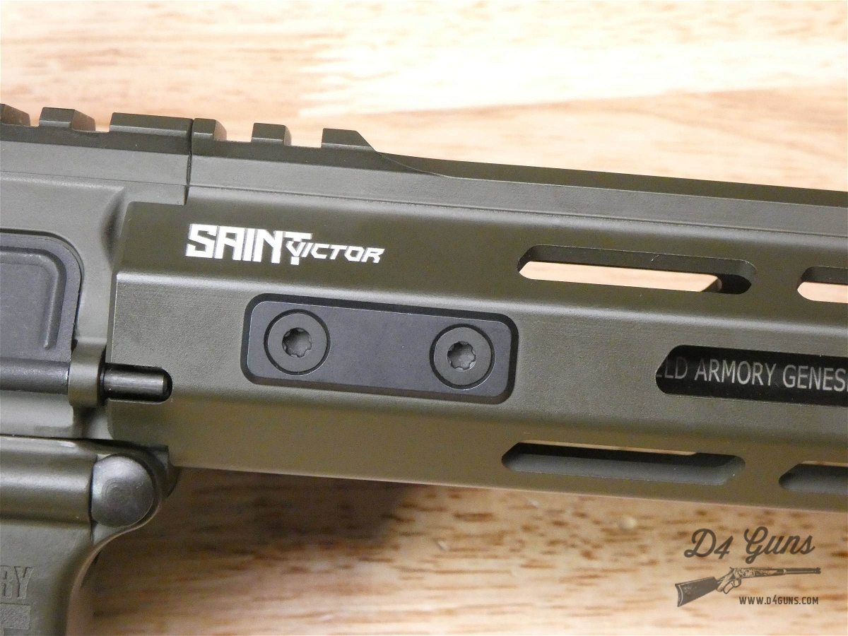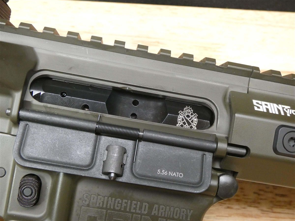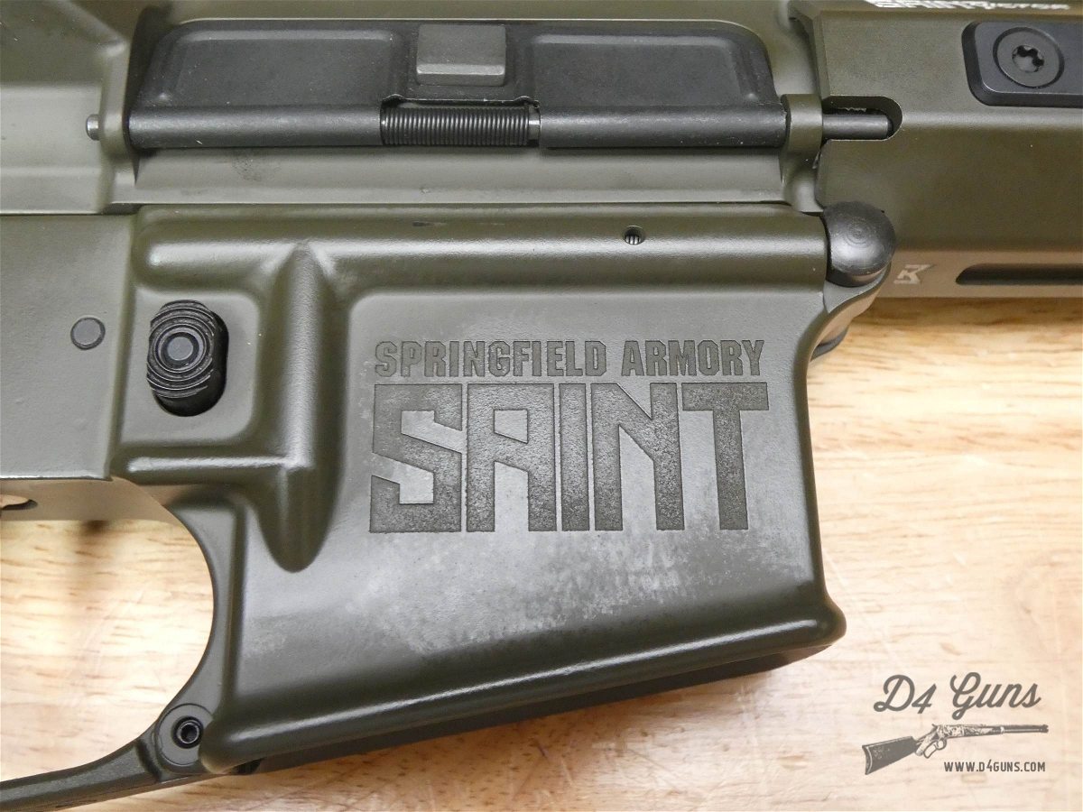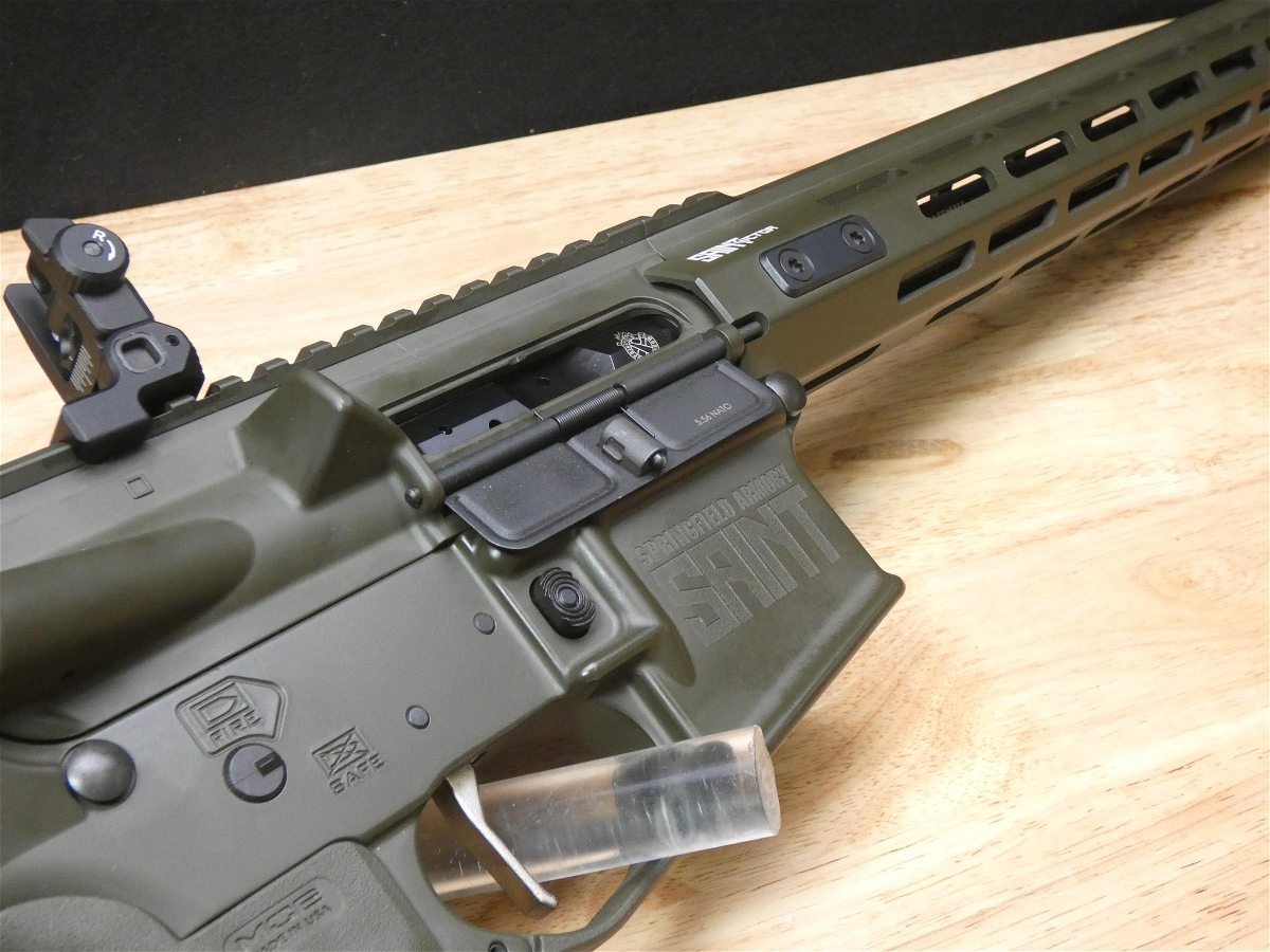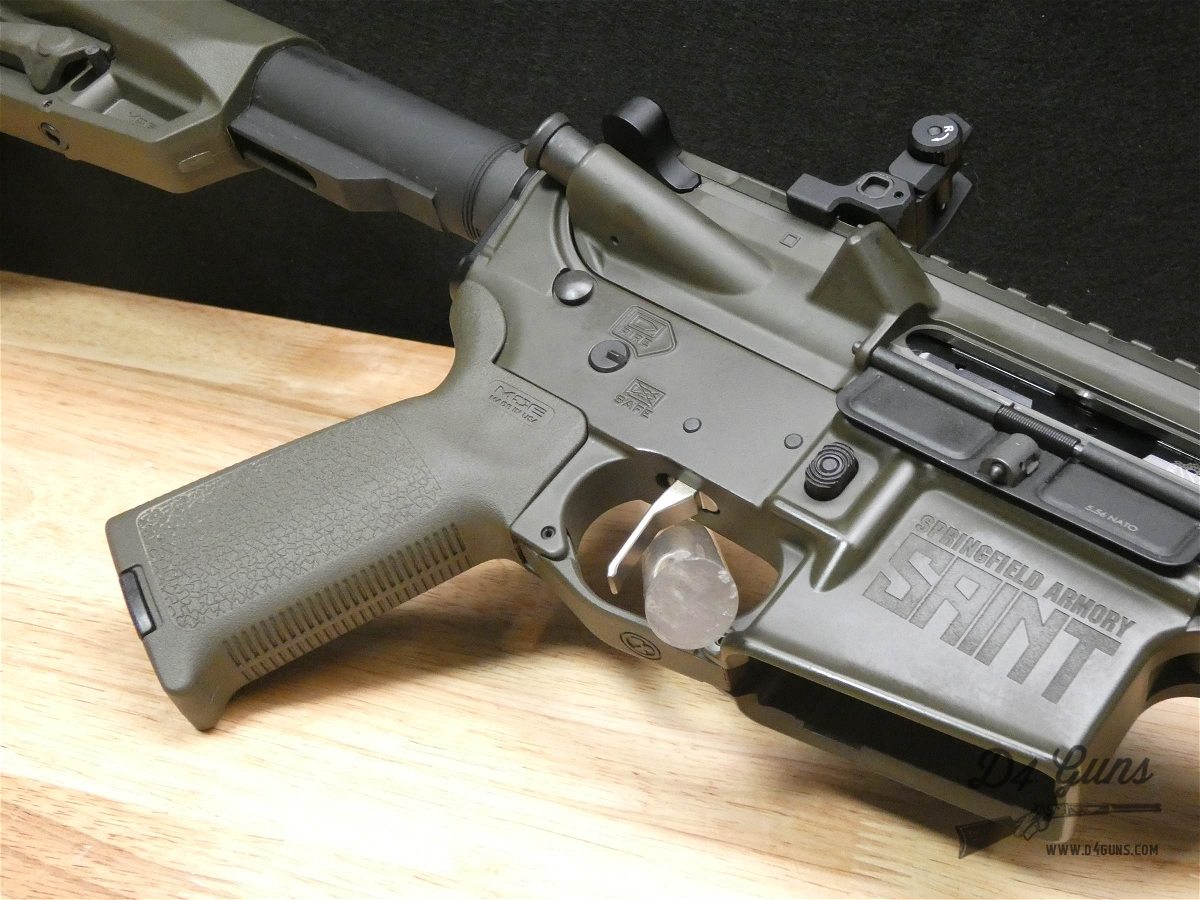 For sale is a Springfield Saint Victor semi-automatic rifle, multi-chambered in 5.56 NATO/ 223. Serial number – ST470794. This rifle is in great condition and comes with original soft case and (1) 30 round steel magazine. This Saint Victor has an OD Green finish with matching OD Green Magpul furniture. The Springfield Saint Victor rifle is "purpose built" and features a full-length 15 inch M-LOK rail to accommodate modern shooting styles, providing comfort for those who shoot with a thumb-over grip. An enhanced, nickel boron coated single-stage flat trigger ensures a grit-free pull for consistent accuracy. The Saint Victor Rifle comes outfitted with SA spring-loaded flip-up iron sights that are adjustable for windage and elevation. Also featured on this rifles is a newly designed SA muzzle brake eliminates barrel rise and softens recoil. Put your money where it matters, get a Springfield Saint Victor. V1-I1 Barrel Length: 16 Bore condition: Excellent