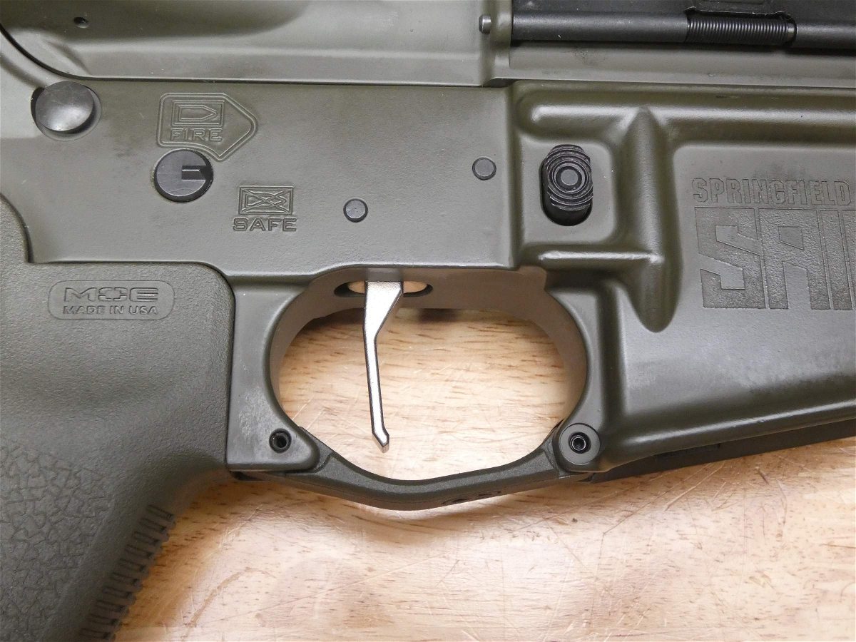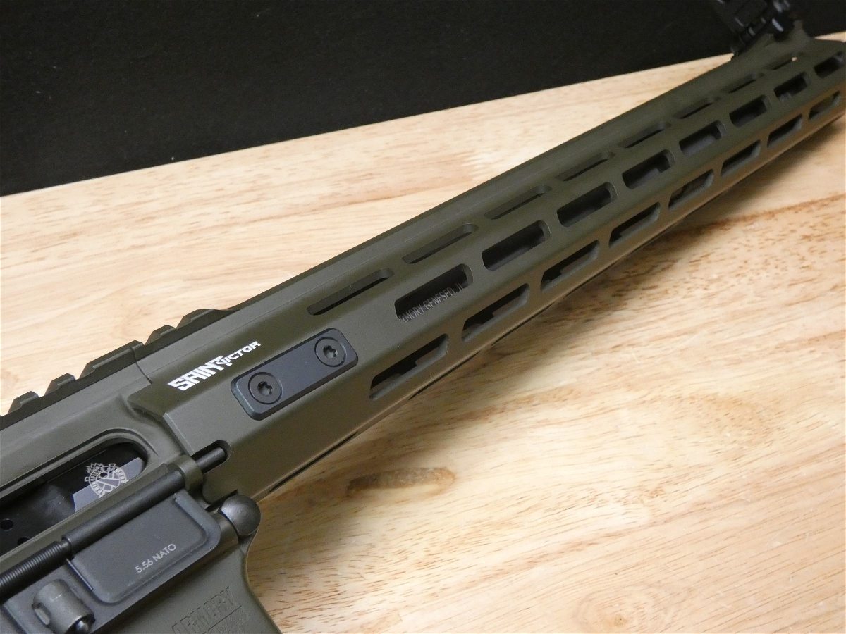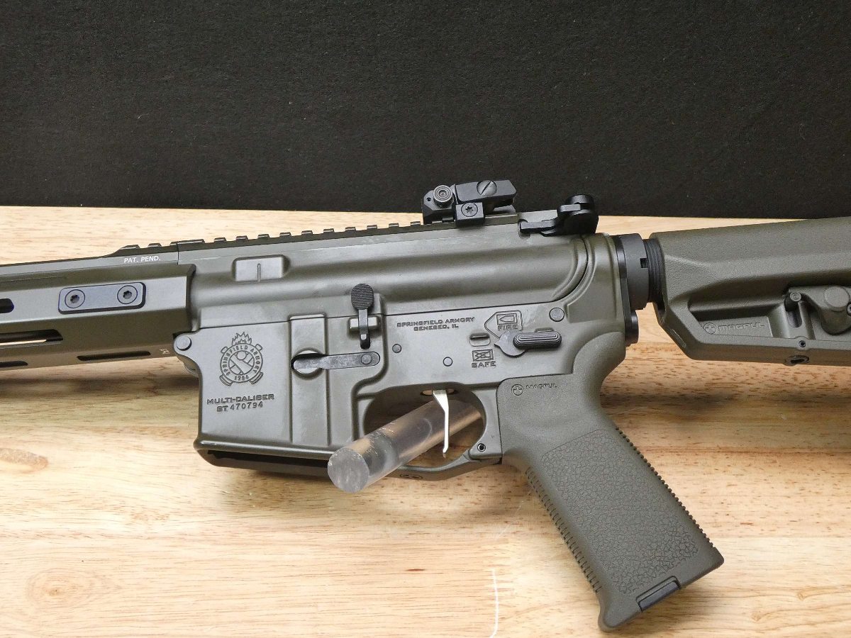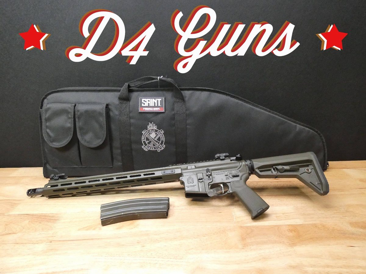 For sale is a Springfield Saint Victor semi-automatic rifle, multi-chambered in 5.56 NATO/ 223. Serial number – ST470794. This rifle is in great condition and comes with original soft case and (1) 30 round steel magazine. This Saint Victor has an OD Green finish with matching OD Green Magpul furniture. The Springfield Saint Victor rifle is "purpose built" and features a full-length 15 inch M-LOK rail to accommodate modern shooting styles, providing comfort for those who shoot with a thumb-over grip. An enhanced, nickel boron coated single-stage flat trigger ensures a grit-free pull for consistent accuracy. The Saint Victor Rifle comes outfitted with SA spring-loaded flip-up iron sights that are adjustable for windage and elevation. Also featured on this rifles is a newly designed SA muzzle brake eliminates barrel rise and softens recoil. Put your money where it matters, get a Springfield Saint Victor. V1-I1 Barrel Length: 16 Bore condition: Excellent