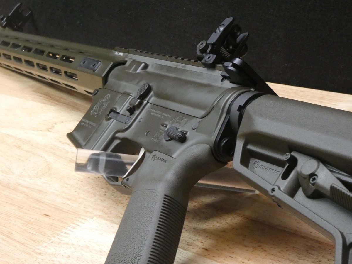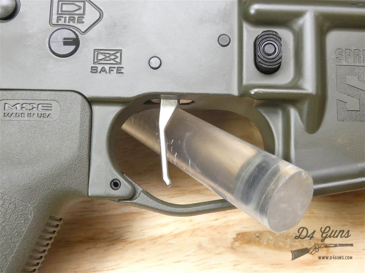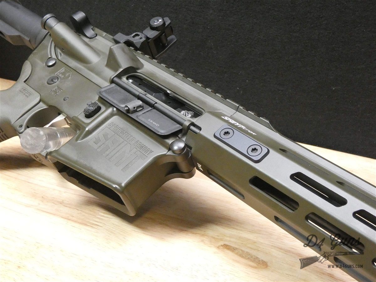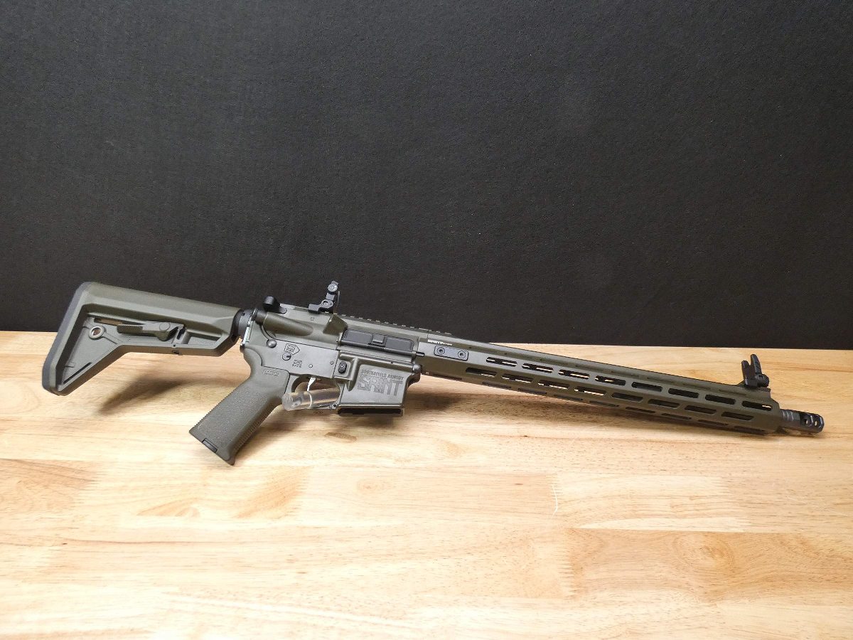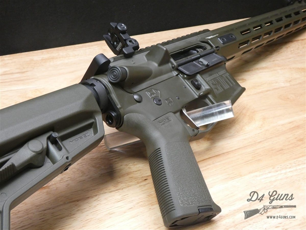 For sale is a Springfield Saint Victor semi-automatic rifle, multi-chambered in 5.56 NATO/ 223. Serial number – ST470794. This rifle is in great condition and comes with original soft case and (1) 30 round steel magazine. This Saint Victor has an OD Green finish with matching OD Green Magpul furniture. The Springfield Saint Victor rifle is "purpose built" and features a full-length 15 inch M-LOK rail to accommodate modern shooting styles, providing comfort for those who shoot with a thumb-over grip. An enhanced, nickel boron coated single-stage flat trigger ensures a grit-free pull for consistent accuracy. The Saint Victor Rifle comes outfitted with SA spring-loaded flip-up iron sights that are adjustable for windage and elevation. Also featured on this rifles is a newly designed SA muzzle brake eliminates barrel rise and softens recoil. Put your money where it matters, get a Springfield Saint Victor. V1-I1 Barrel Length: 16 Bore condition: Excellent