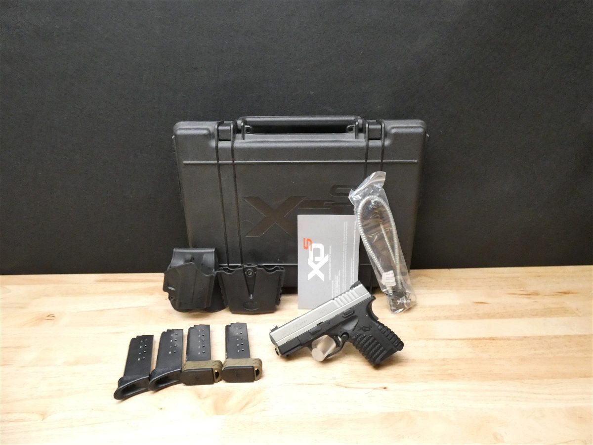For sale is a Springfield XDs-45 semi automatic pistol in .45 ACP. Serial number- S3159308. This XDs-45 is in great condition and comes with (2) 6 round magazine and (2) 5 round magazine, an XD paddle holster and dual magazine holster, manual, bore brush, cable lock, and XDs hardcase. This pistol has a red fiber optic front sight and is bi-tone with stainless steel slide and black polymer frame. The XDs Single Stack from Springfield Armory has forever changed what you can expect out of your daily carry pistol. Now all the best features and power you’re used to in the XD and XDm can be had in the shockingly slim XDs. Put an XDs 3.3 single stack in your hand today, and you’ll want to shoot it. Put it in your holster, and you’ll find that it’s noticeably unnoticeable.