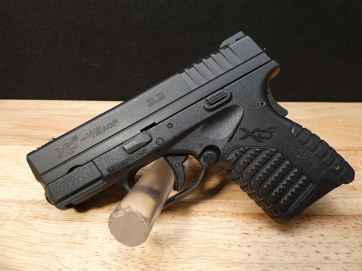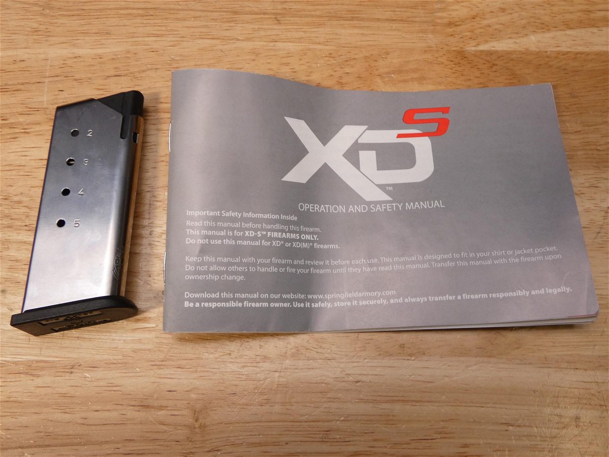 For sale is a Springfield XDs-45 semi automatic pistol in .45 ACP. Serial number- XS600053. This XDs-45 is in great condition and comes with one 5-round magazine, an XD paddle holster and dual magazine holster, gun holster, manual and XDs hard case. The XDs Single Stack from Springfield Armory has forever changed what you can expect out of your daily carry pistol. Now all the best features and power you’re used to in the XD and XDm can be had in the shockingly slim XDs. Put an XDs 3.3 single stack in your hand today, and you’ll want to shoot it. Put it in your holster, and you’ll find that it’s noticeably unnoticeable. V2-C4 Barrel Length: 3.3 Bore condition: Good