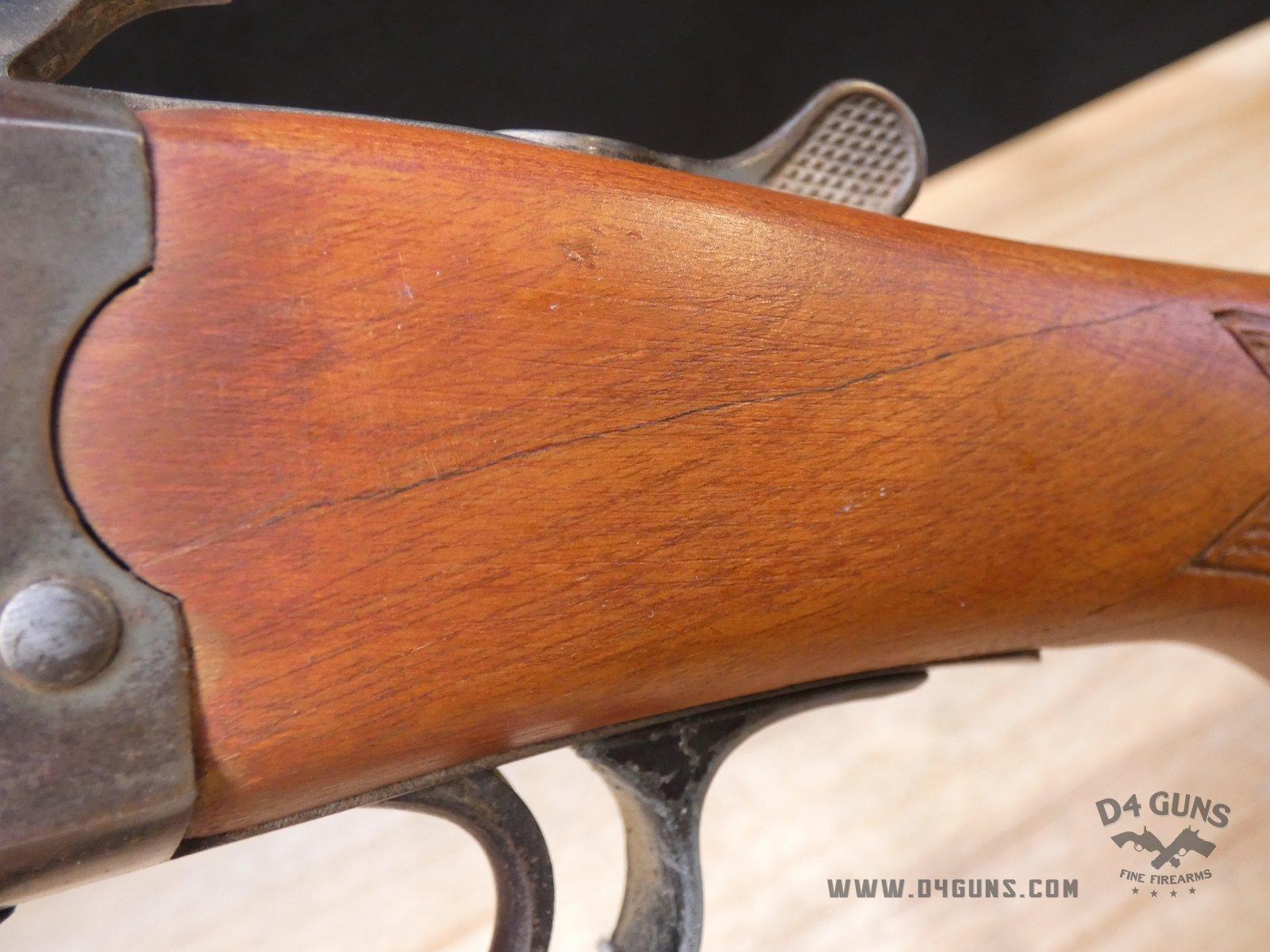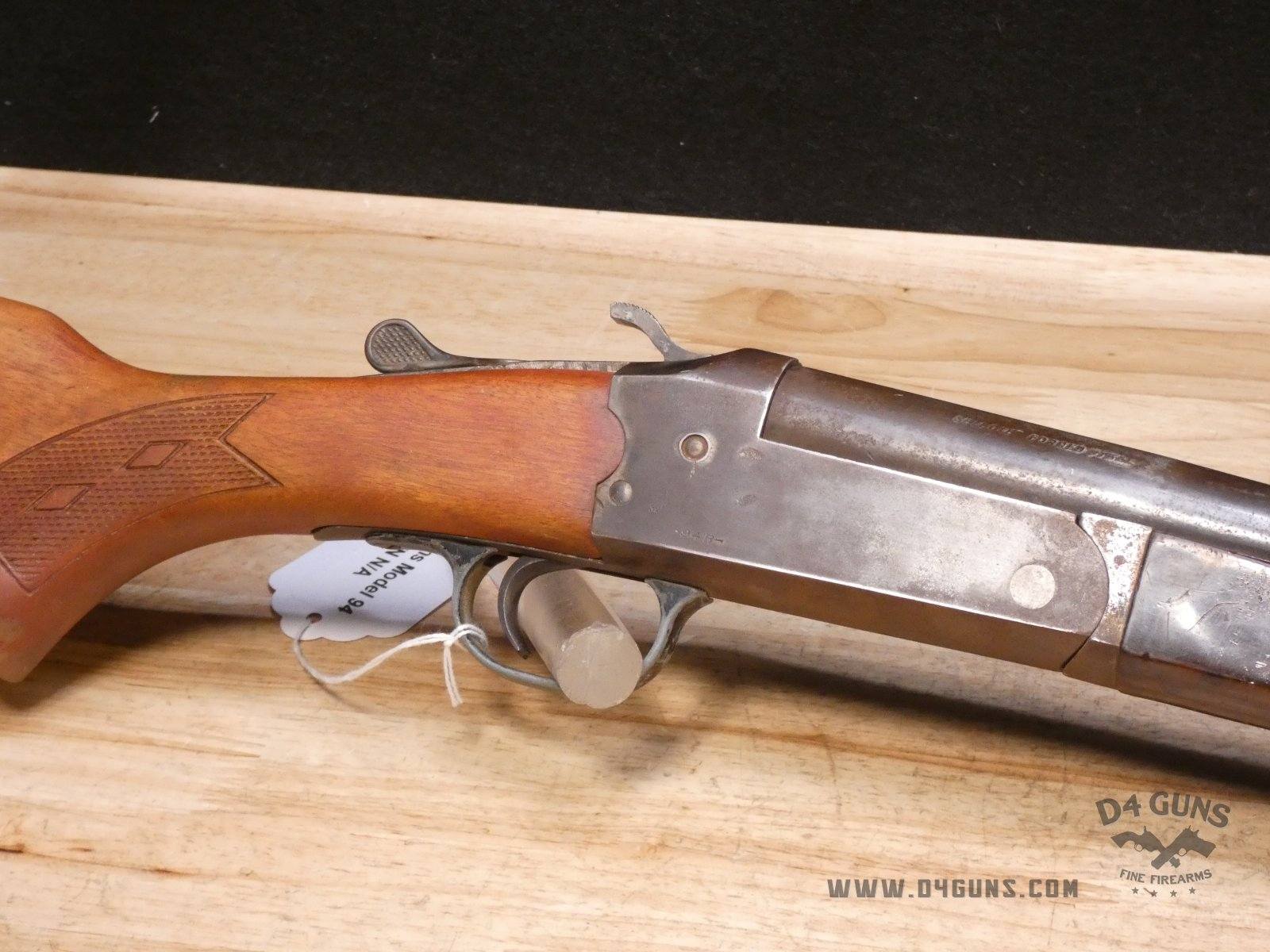 Up for grabs is a Stevens Savage 94 Single-shot shotgun in 12ga. 2 3/4" Chamber. Serial number- N/A. We are unsure of the choke. Has ejectors. Please refer to the photos as there are multiple cracks in the stock. The Stevens Model 94 was made in various letter designations from 1937 to 1984. Any of them made before 1968 had no serial numbers, making them pretty much impossible to date. V1-F2 Barrel Length: 29.5 Bore condition: Good
