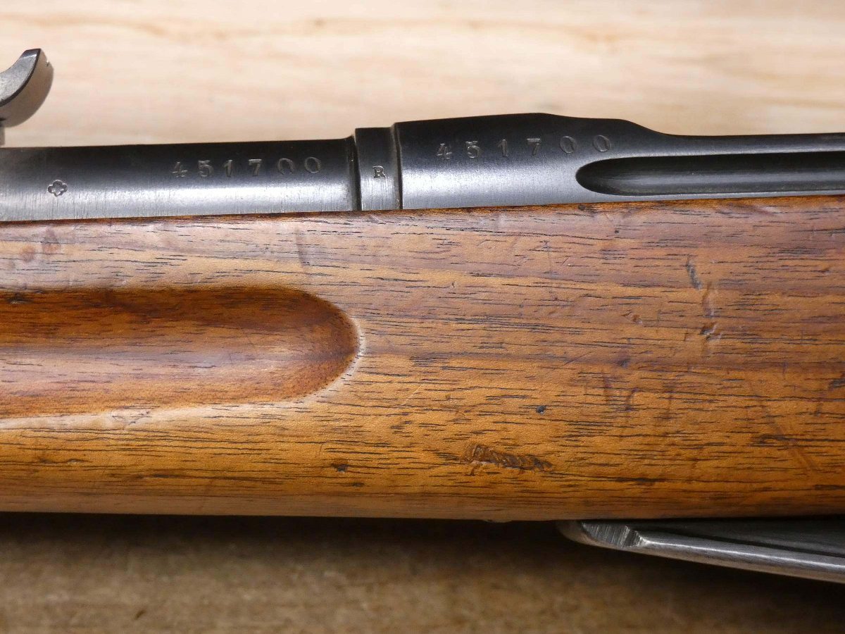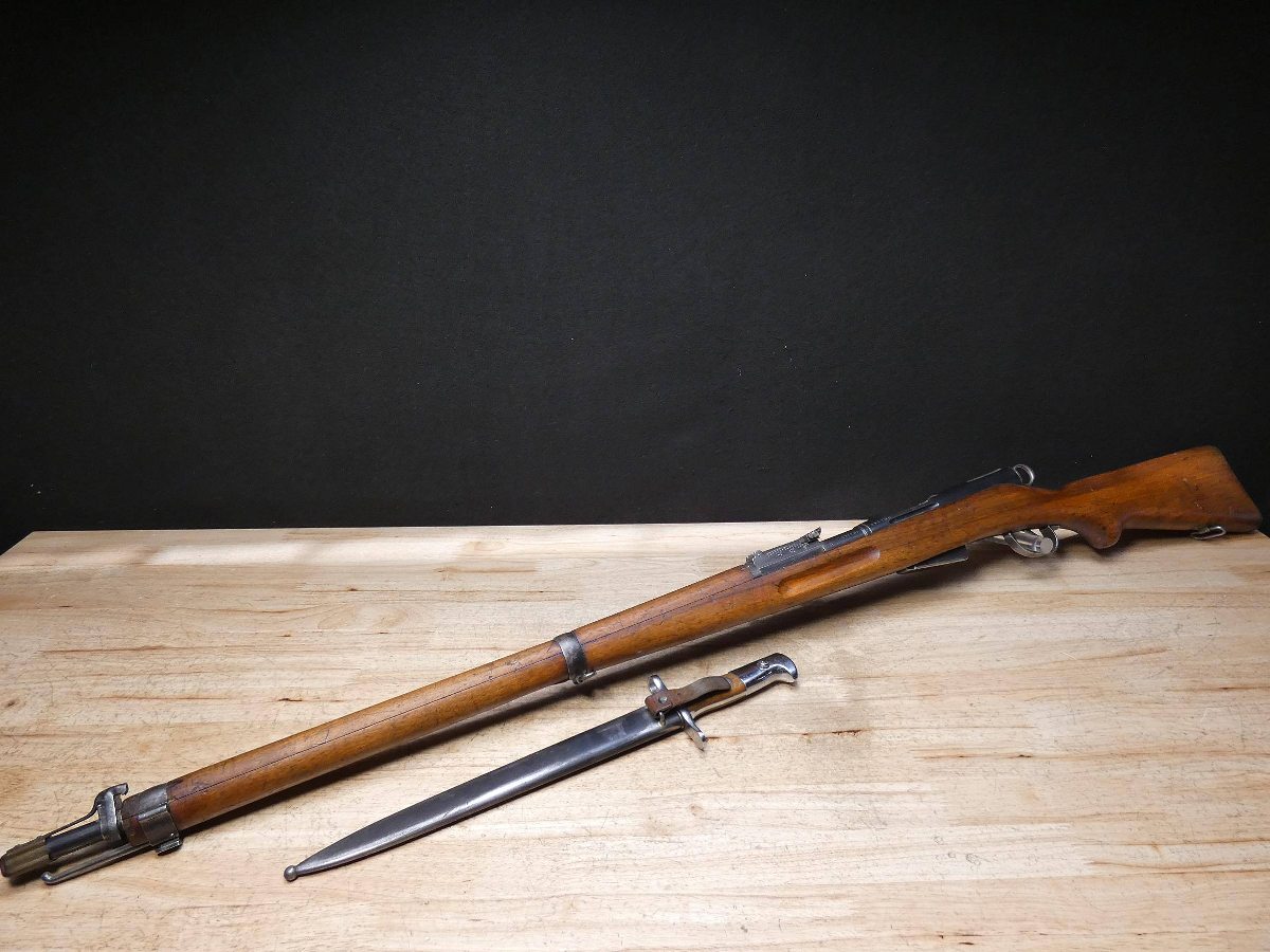 For sale is a Swiss Model K1911 bolt-action rifle in 7.5x55mm. Serial number- 451700. This rifle is in great condition with some expected wear on a rifle from the first half of the 20th century. It comes with a Swiss bayonet, the serial on the bayonet does not match the rifle. The Schmidt–Rubin rifles were a series of Swiss Army service rifles in use between 1889 and 1958. They are distinguished by the straight-pull bolt action invented by Rudolf Schmidt and use Eduard Rubin's 7.5×55mm Schmidt–Rubin rifle cartridge. V2-B6 Barrel Length: 31 Bore condition: Good