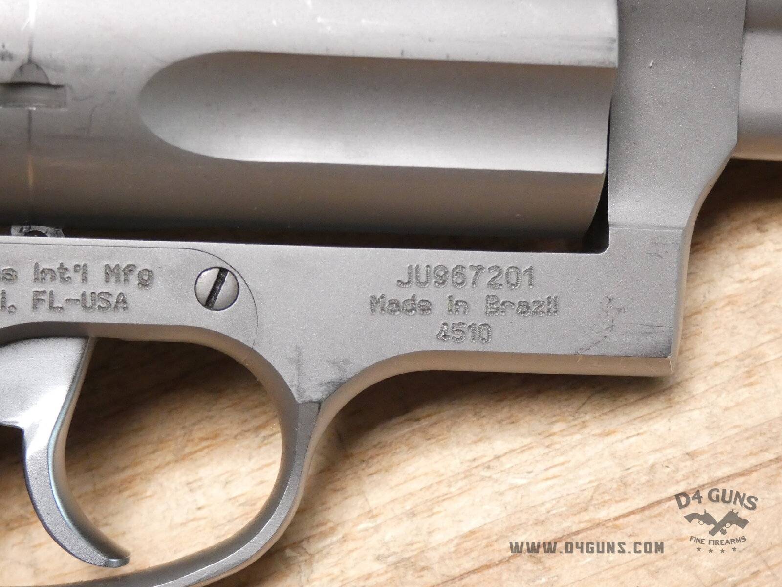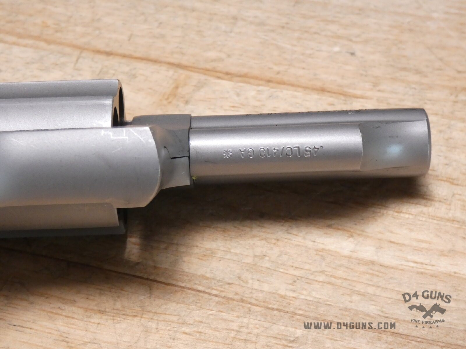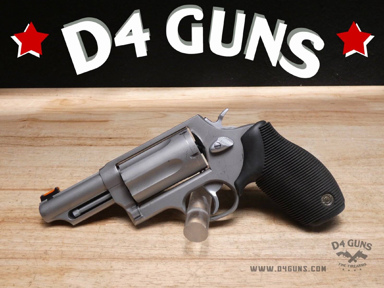 Up for grabs is a Taurus Judge revolver in .45LC/.410ga. Serial number- JU67201. More than a decade since it was first introduced, the legendary Taurus Judge still rules. Capable of chambering both 45 Colt and 410 shotshells, it's the original five-shot game changer. Comes with the original box. V2-I4 Barrel Length: 3 Bore condition: Fair