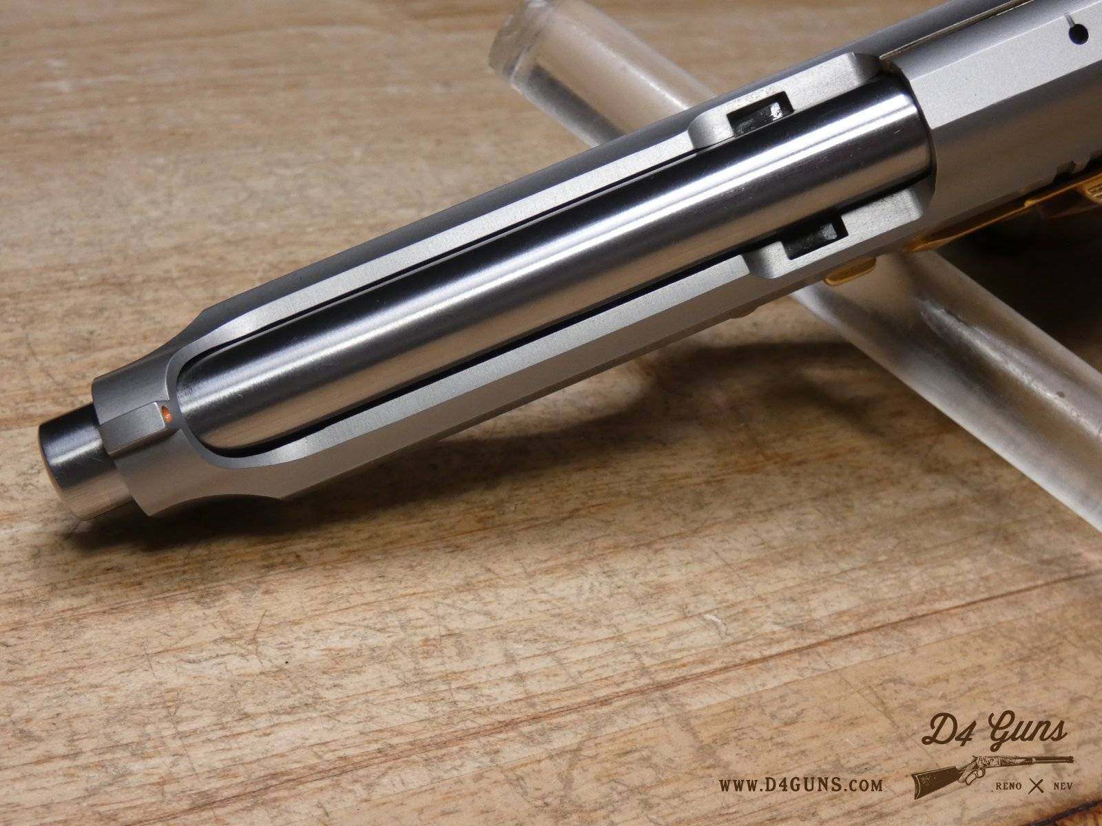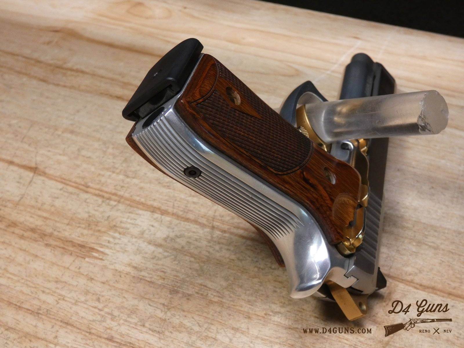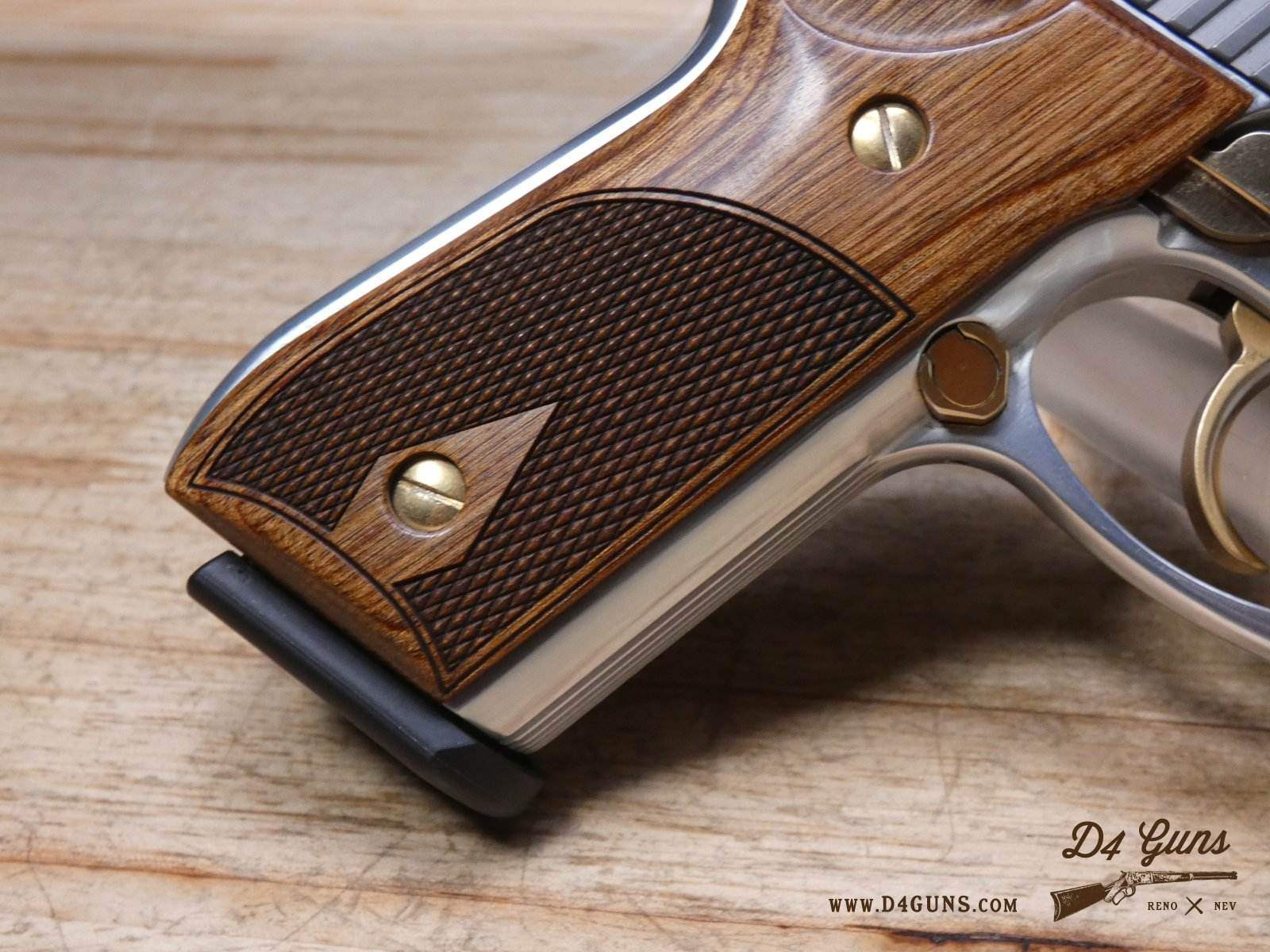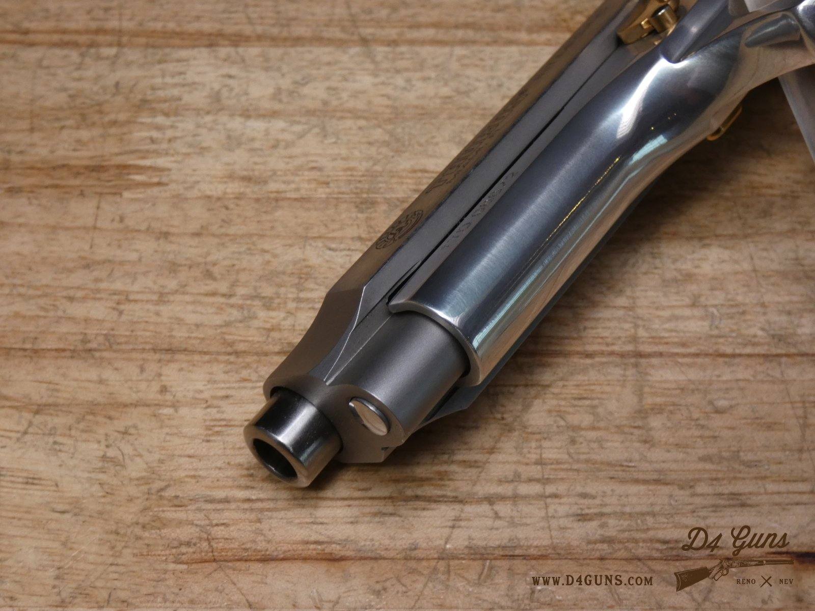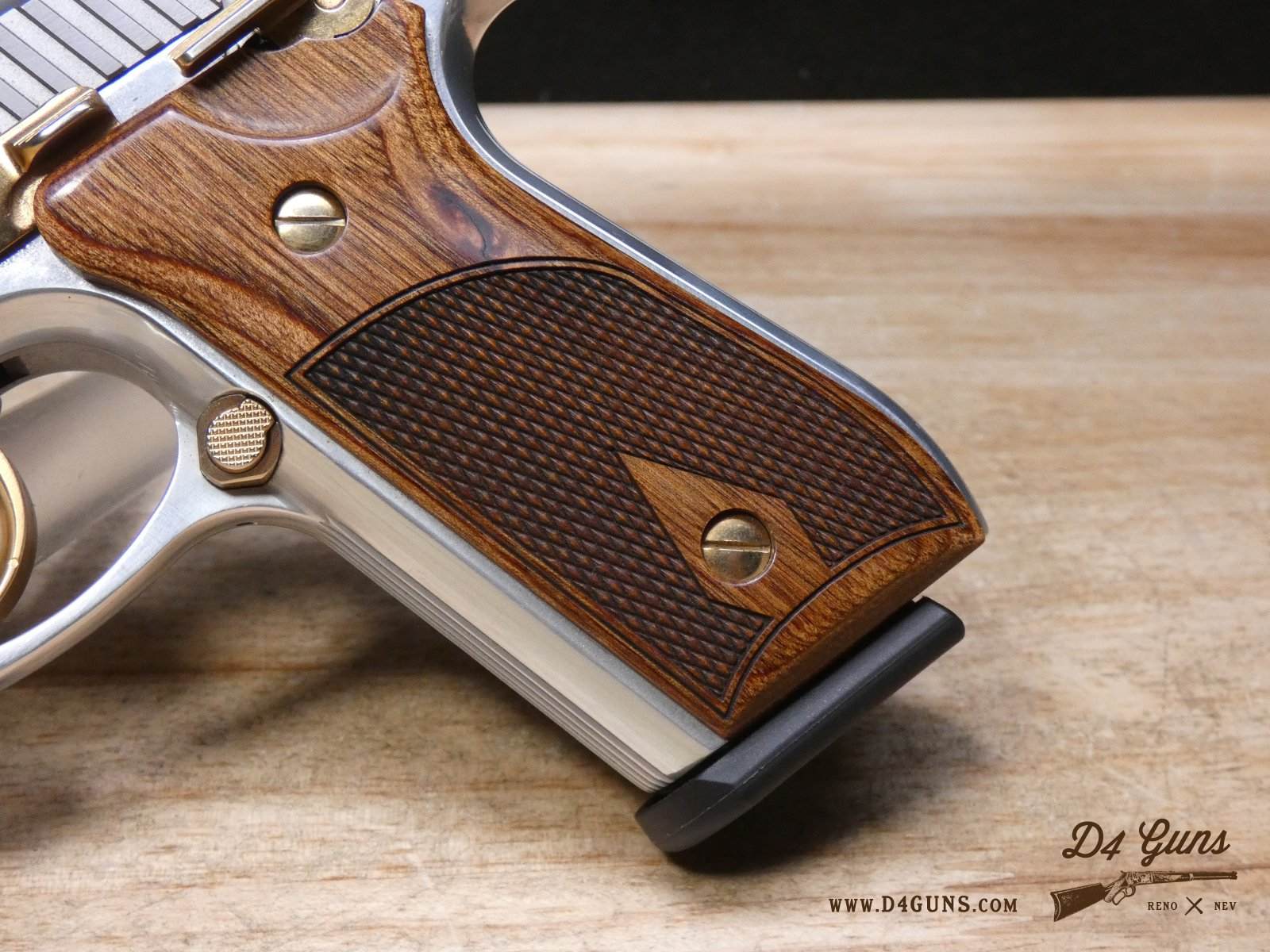 For sale is a Taurus Model PT AFS semi-automatic pistol in 9mm. Serial number- TTD96672. This pistol comes with wooden grips and two 10-round magazines. The Taurus PT92 is a double-action/single-action, 9mm, double-stack-magazine fed, short recoil-operated, semi-automatic pistol manufactured by Taurus in the former Beretta factory in São Paulo, Brazil. This pistol looks to have a stainless finish with golden trim/furnisher. Includes a leather holster as well! V2-J2 Barrel Length: 5 Bore condition: Good