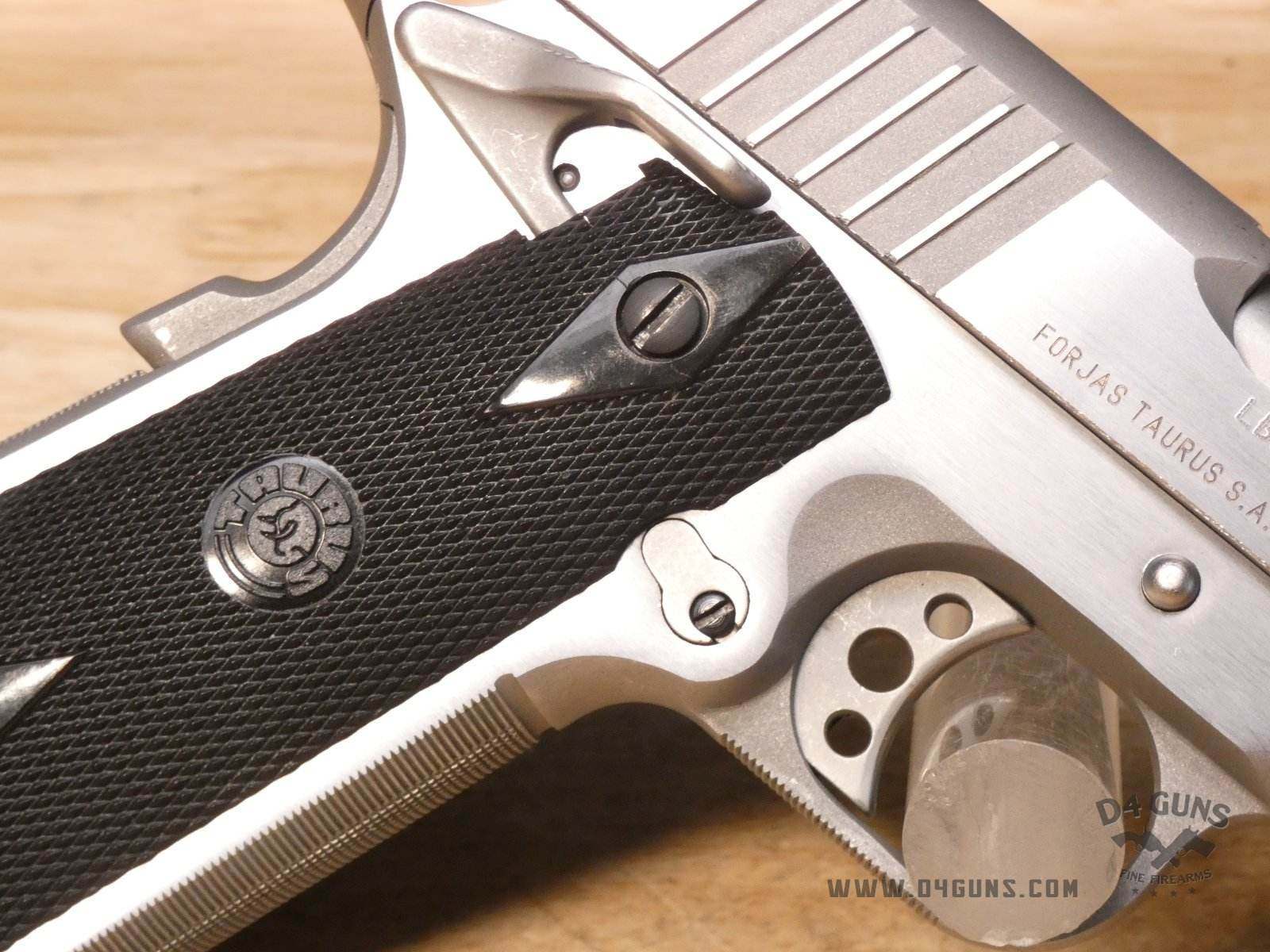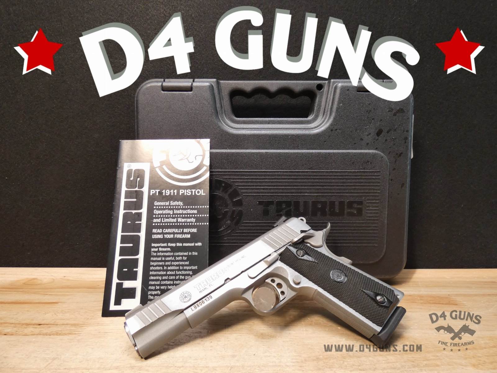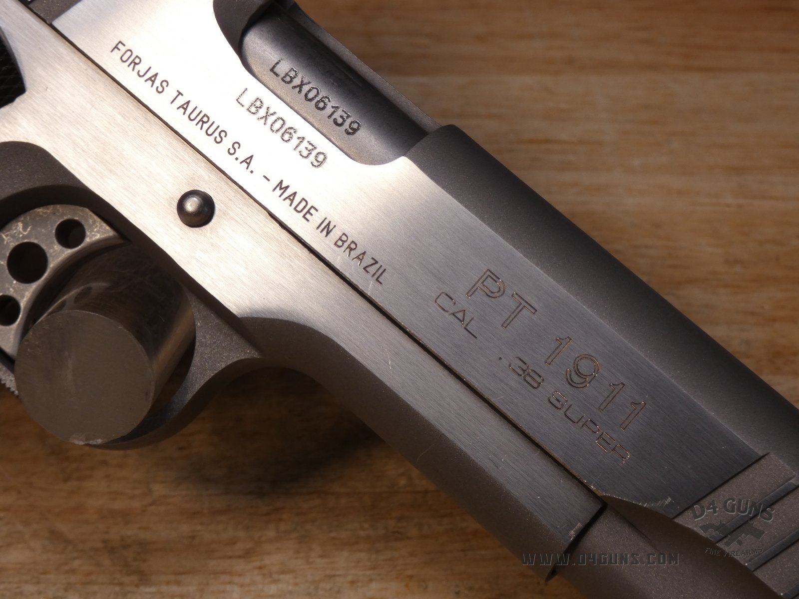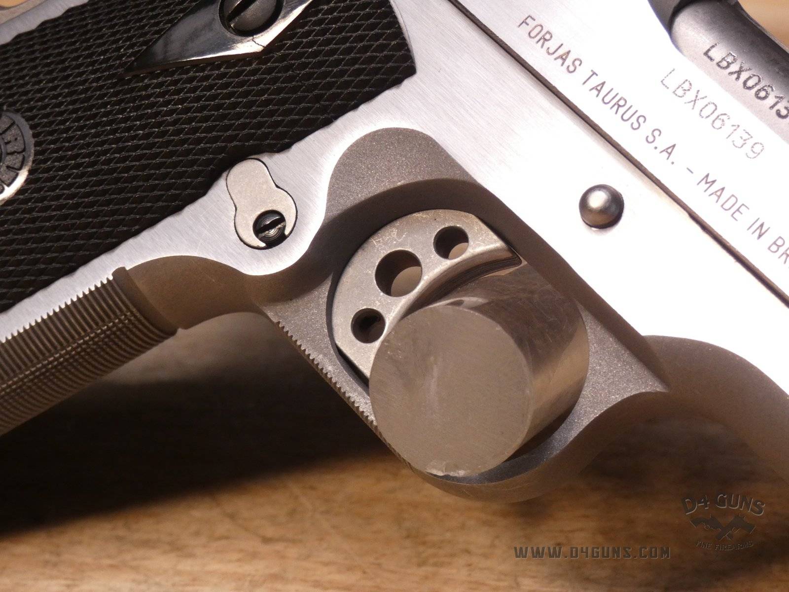 Up for grabs is a Taurus PT1911 semi-automatic pistol in .38 Super. Serial number-LBX06139. This pistol is in great condition and comes with the original case, manual, and (1) 9-Round magazine. Features a skeletonized trigger, ambidextrous safety and black checkered black grips. V2-H3 Barrel Length: 5 Bore condition: Good