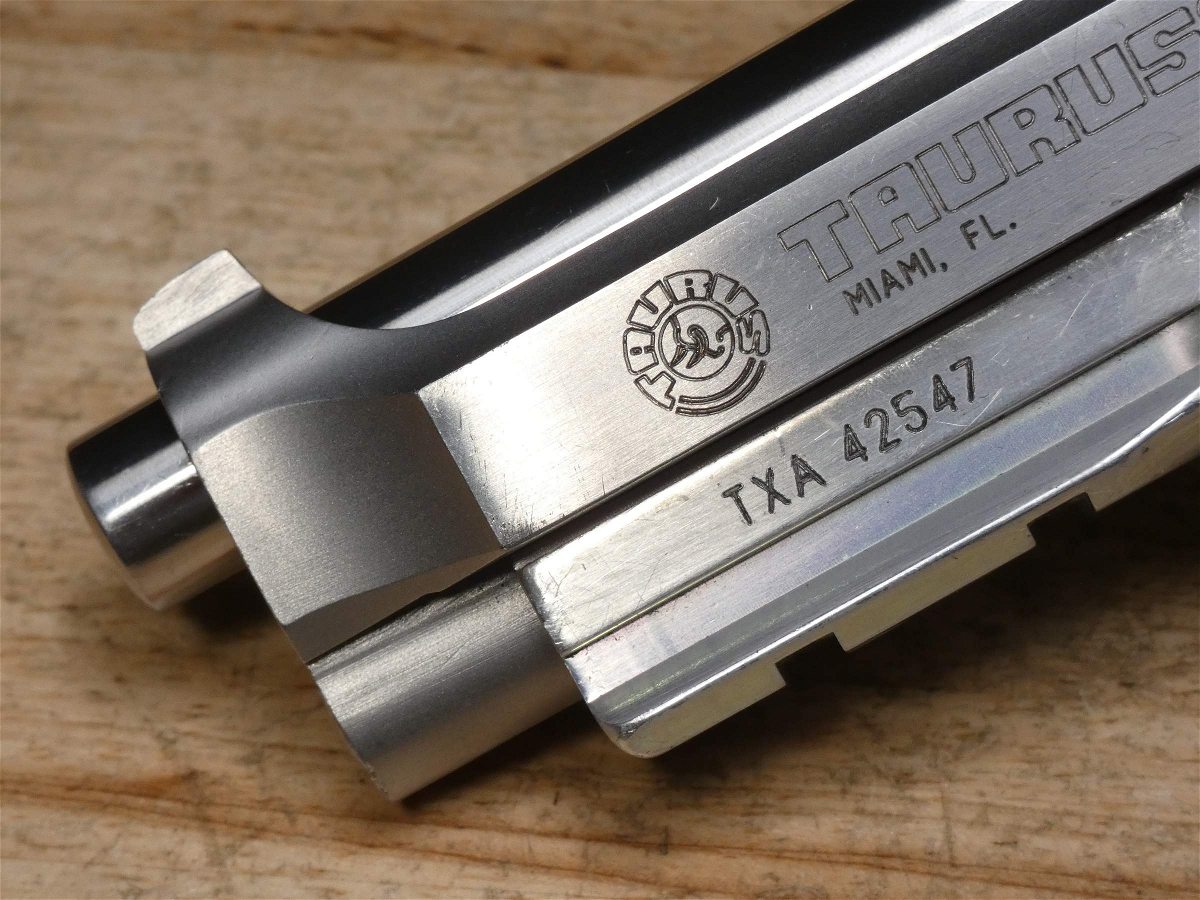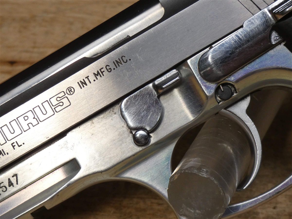For sale is a Taurus PT92AR semi-automatic pistol in 9mm. Serial number – TXA42547. This pistol is in fair condition with some scratches on the frame and grip panels. It comes with a 10-round magazine. In 1980, Taurus purchased the Beretta factory in Sao Paulo, Brazil "lock, stock and barrel" and immediately sought to improve on the Beretta design, resulting in the popular and acclaimed Taurus 92. V2-I3 Barrel Length: 5 Bore condition: Good