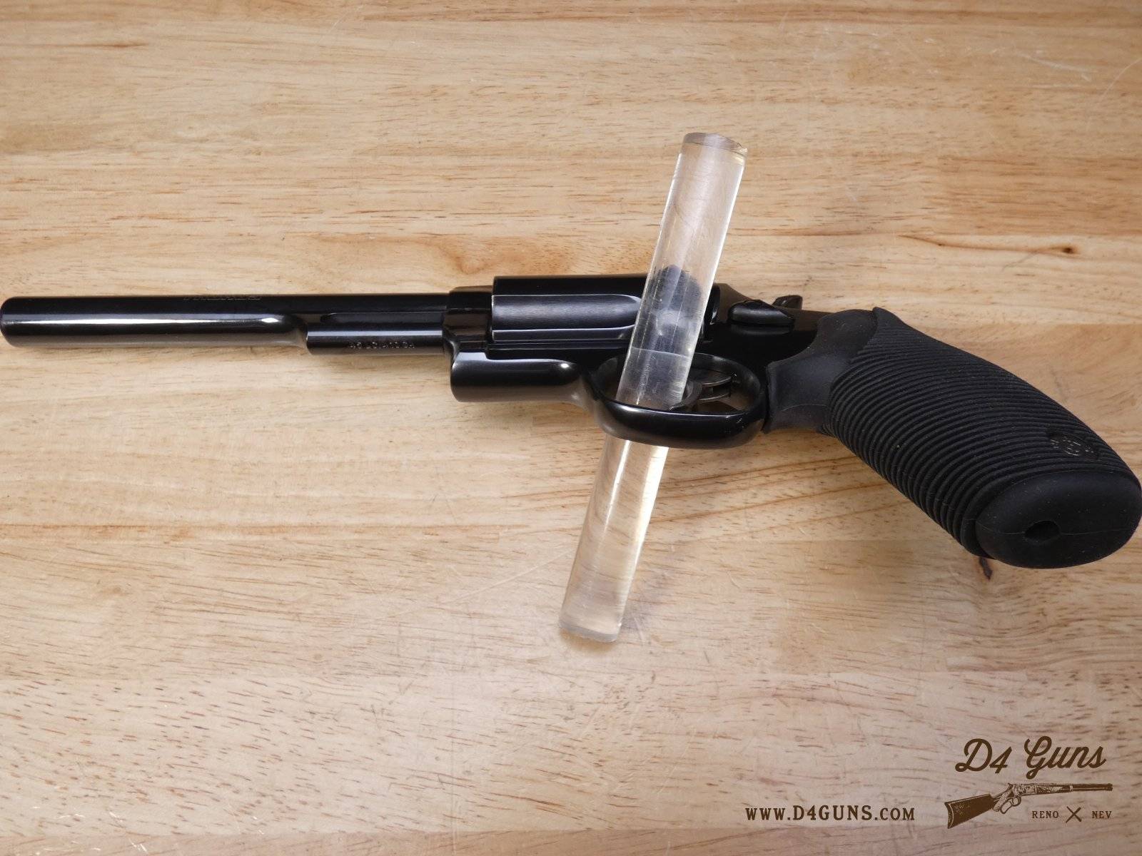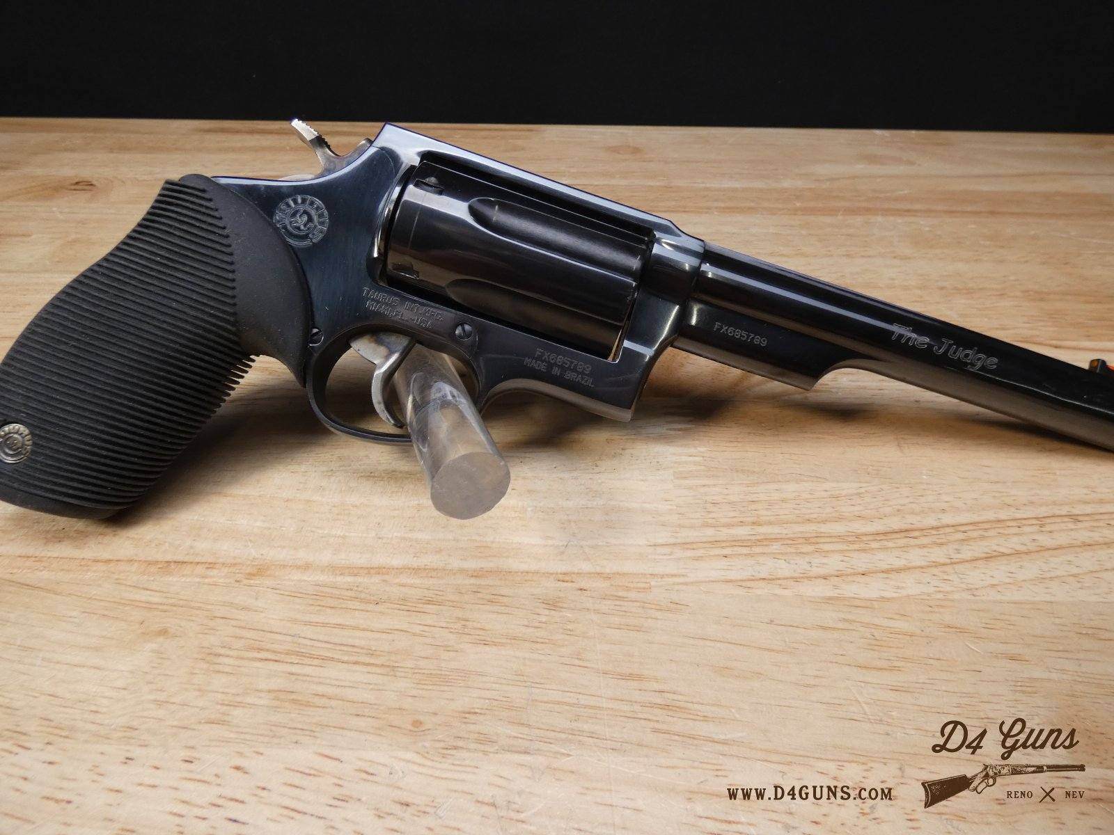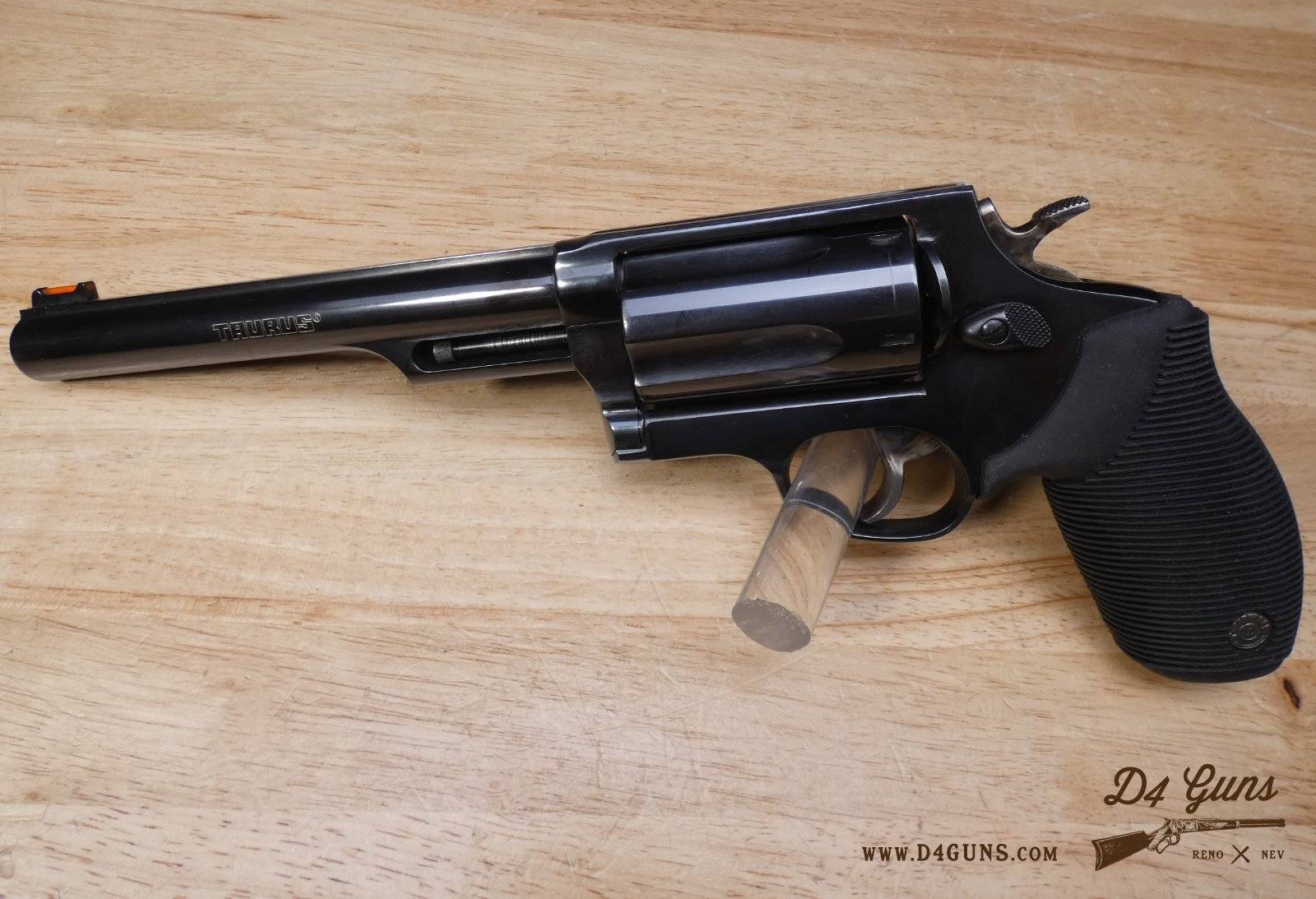 For sale is a Taurus Judge revolver in .45LC/.410ga. Serial number- FX685789. More than a decade since it was first introduced, the legendary Taurus Judge still rules. Capable of chambering both 45 Colt and 410 shotgun shells, it's the original five-shot game changer. This particular revolver has a 6.5 inch barrel and also includes an extra grip. Please note that there is residual lead in the barrel that was unable to come out with cleaning. V2-C2 Barrel Length: 6.5 Bore condition: Good