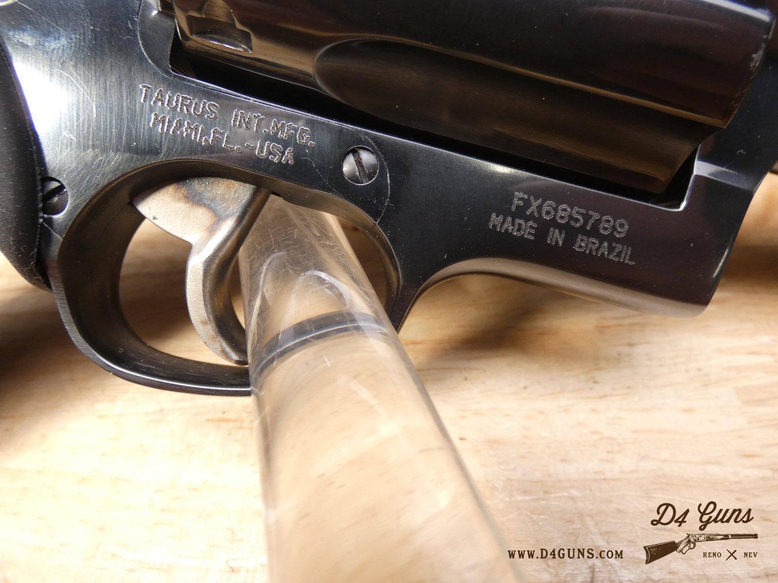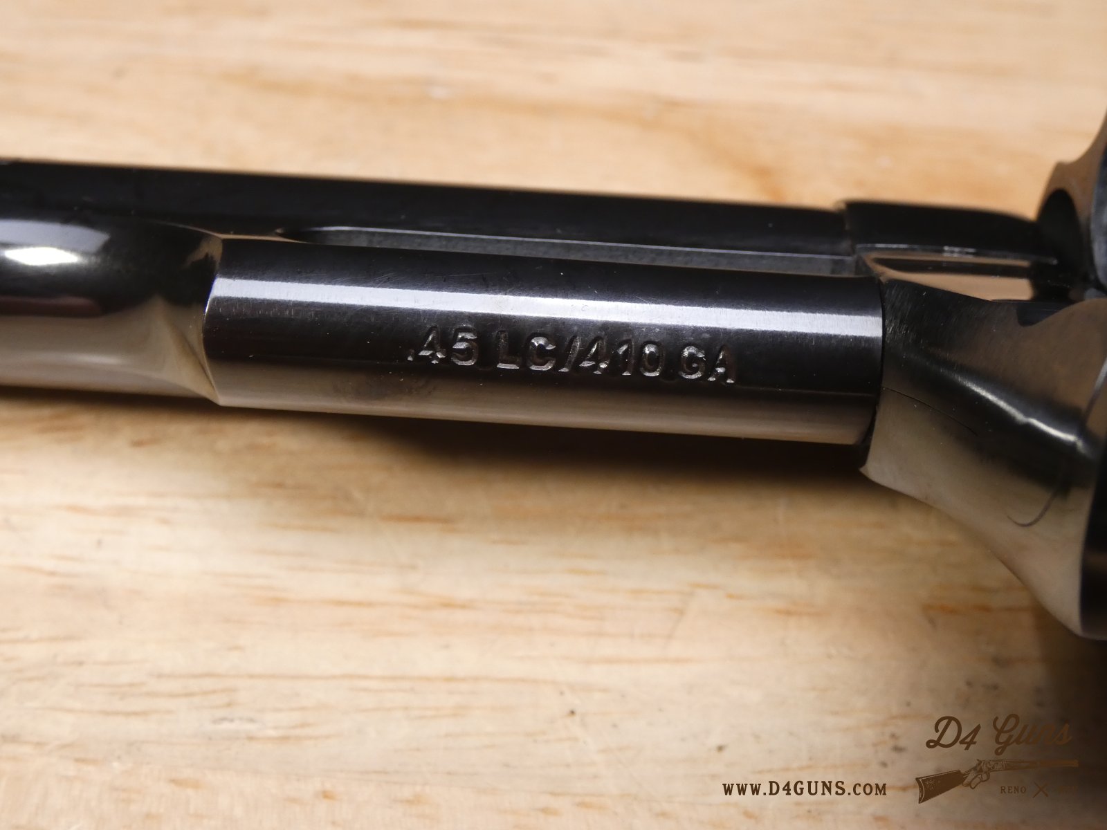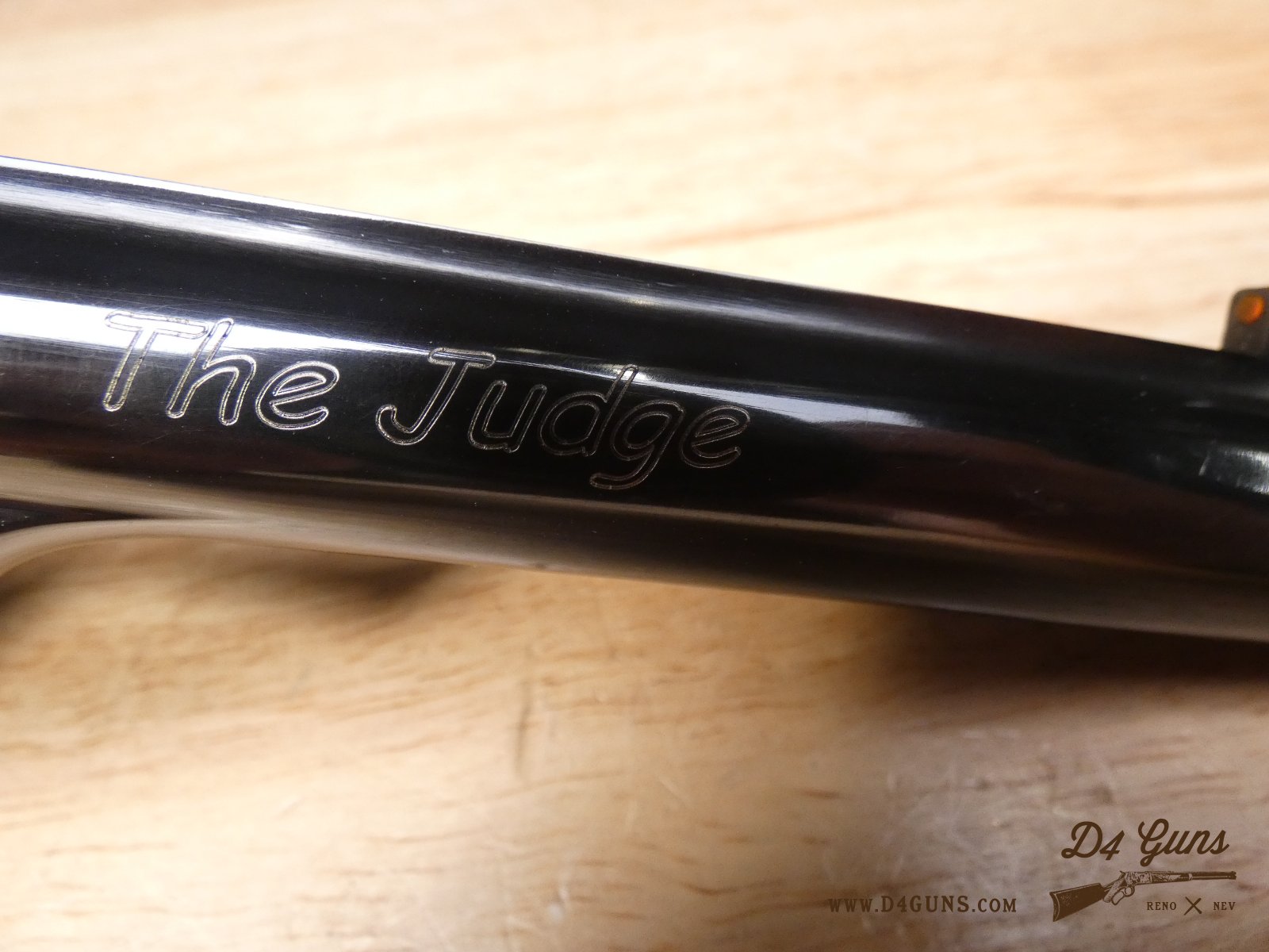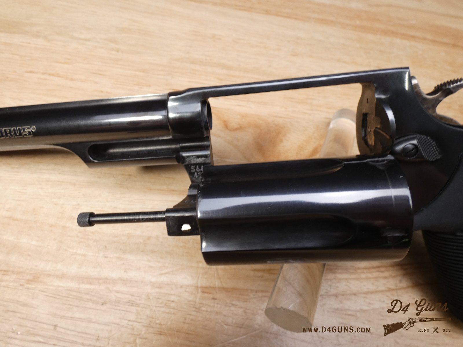 For sale is a Taurus Judge revolver in .45LC/.410ga. Serial number- FX685789. More than a decade since it was first introduced, the legendary Taurus Judge still rules. Capable of chambering both 45 Colt and 410 shotgun shells, it's the original five-shot game changer. This particular revolver has a 6.5 inch barrel and also includes an extra grip. Please note that there is residual lead in the barrel that was unable to come out with cleaning. V2-C2 Barrel Length: 6.5 Bore condition: Good
