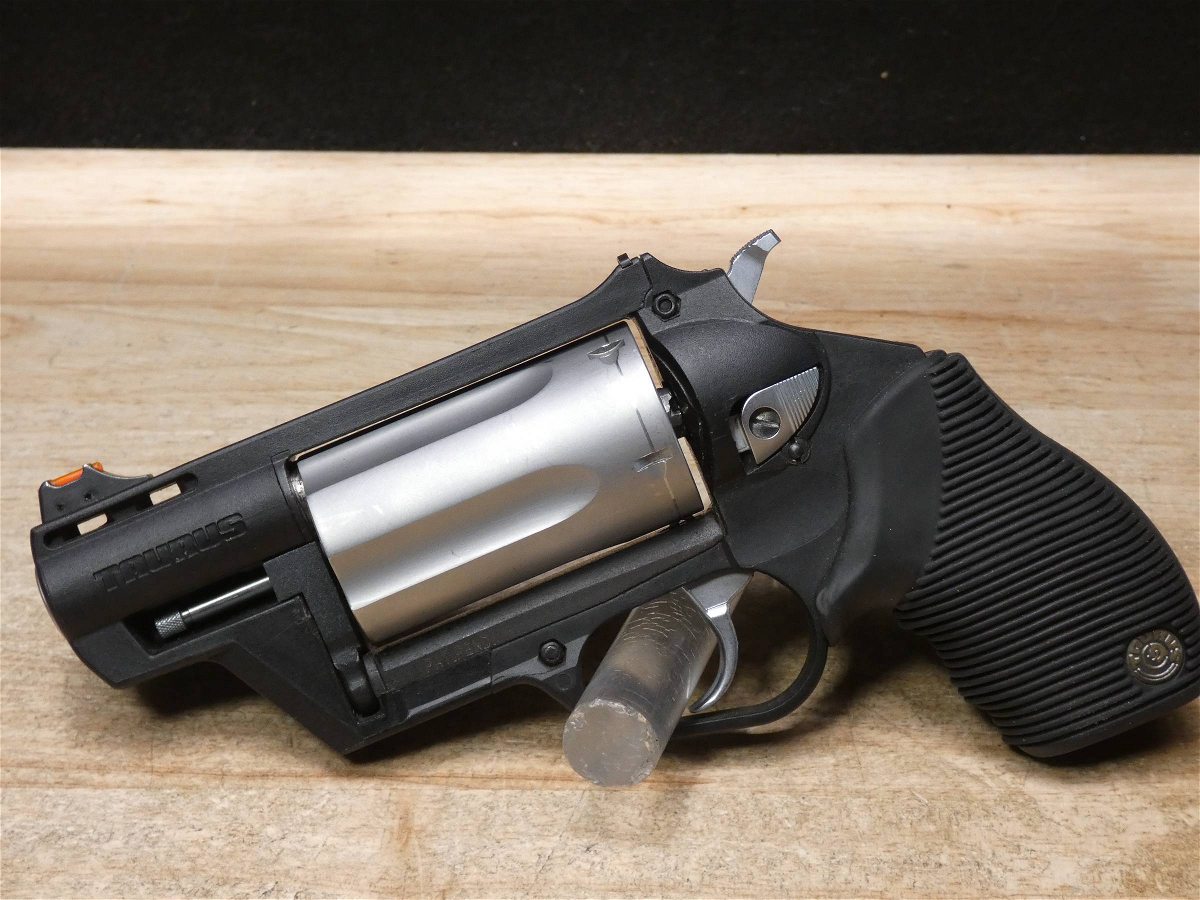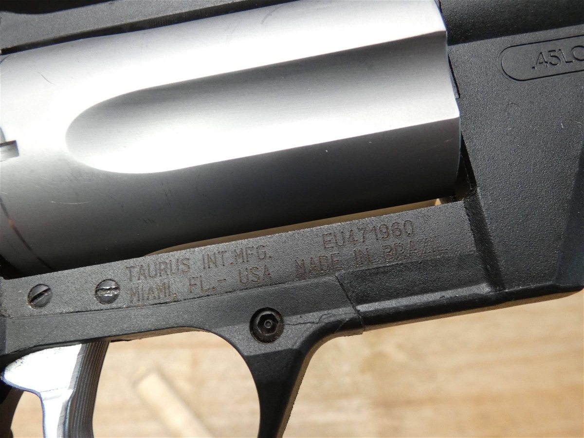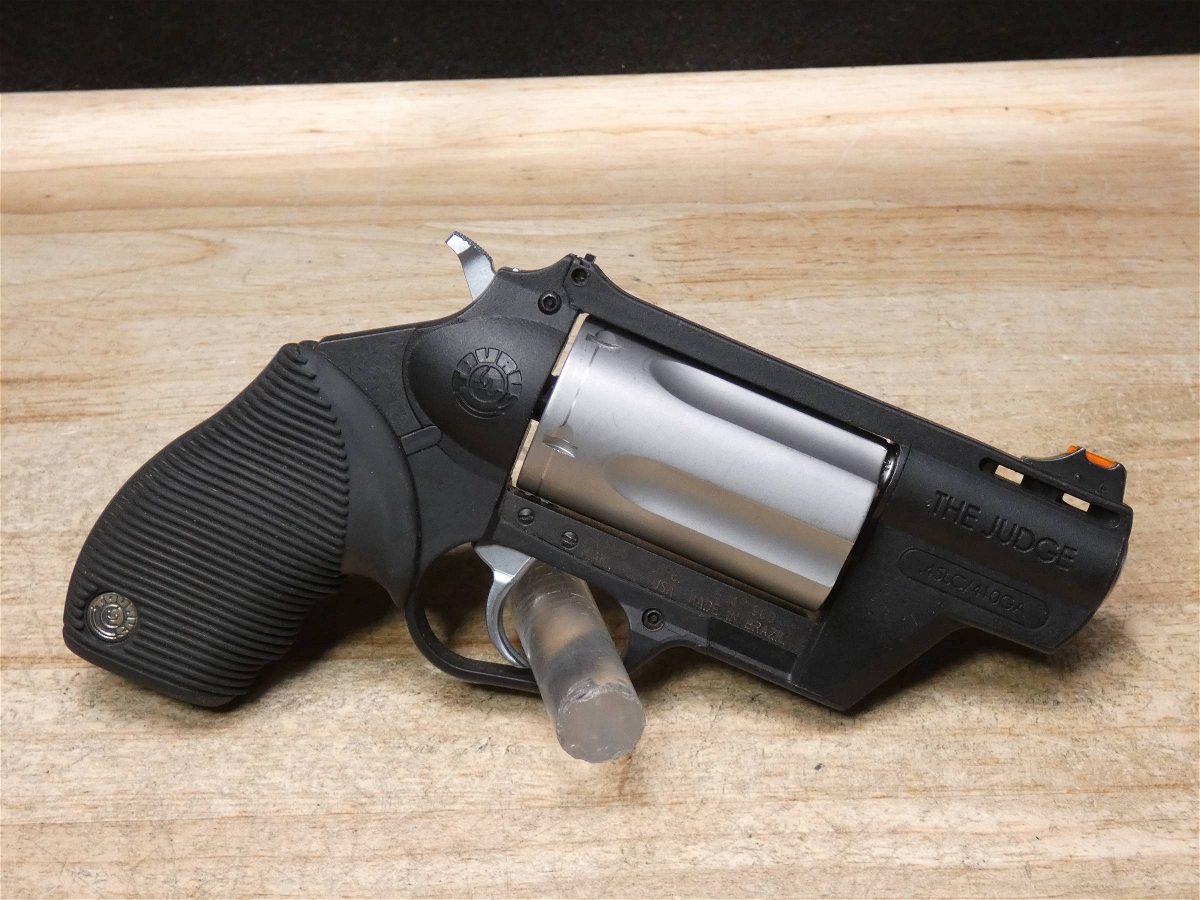 For sale is a Taurus The Judge Public Defender Poly double-action revolver in .45LC/.410ga. Serial number- EU471960. It is in great conditioning and includes a holster. More than a decade since it was first introduced, the legendary Taurus Judge still rules. Capable of chambering both 45 Colt and 410 shotshells, it's the original five-shot game changer. V2-D1 Barrel Length: 2 Bore condition: Excellent
