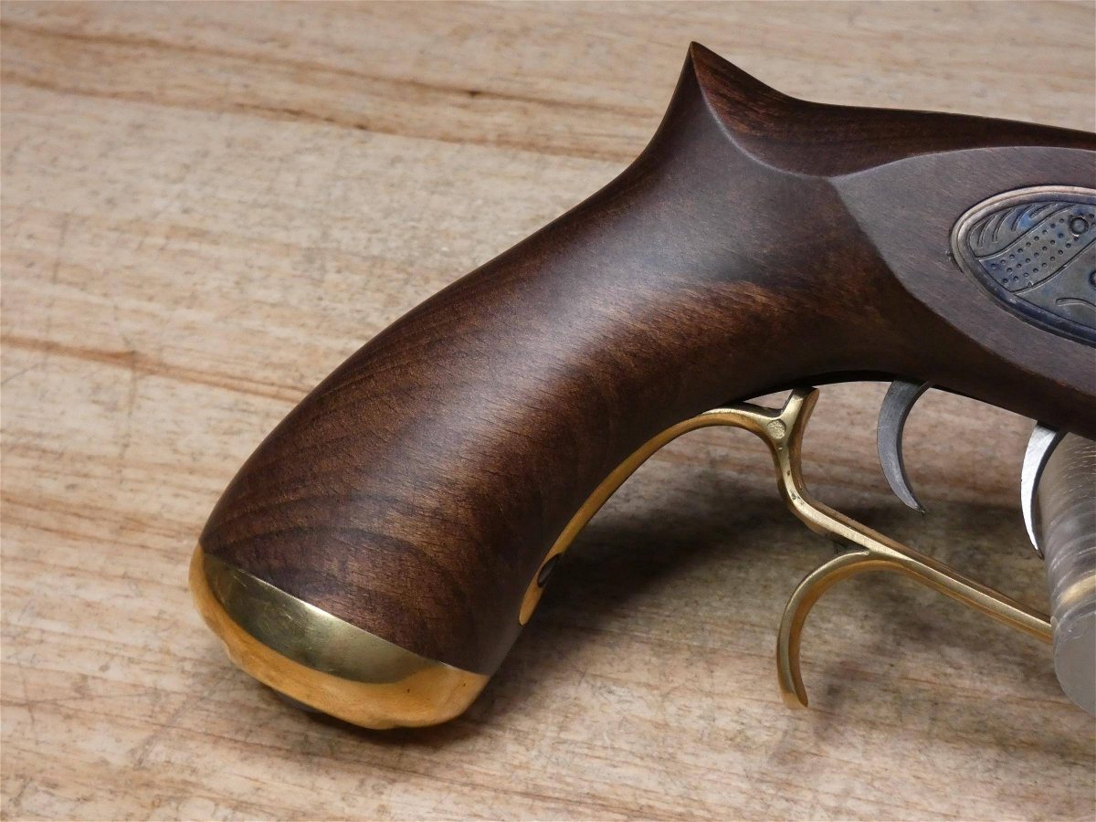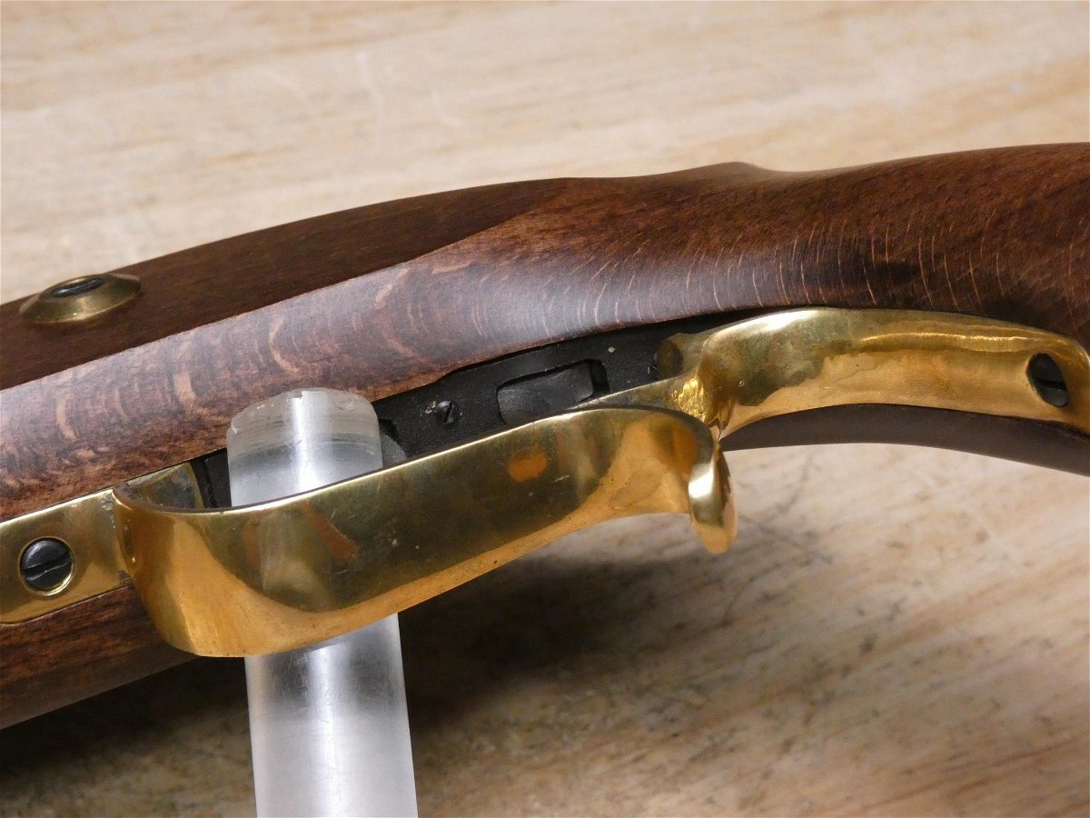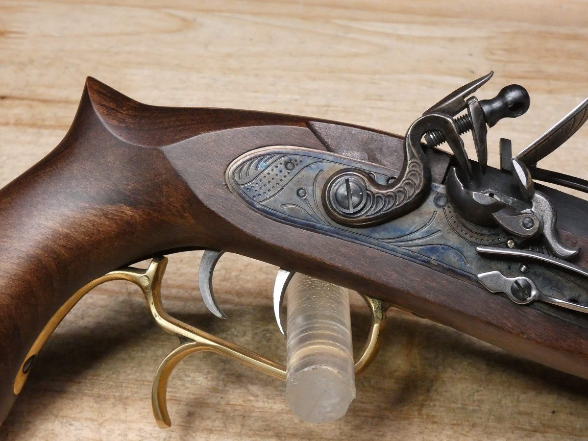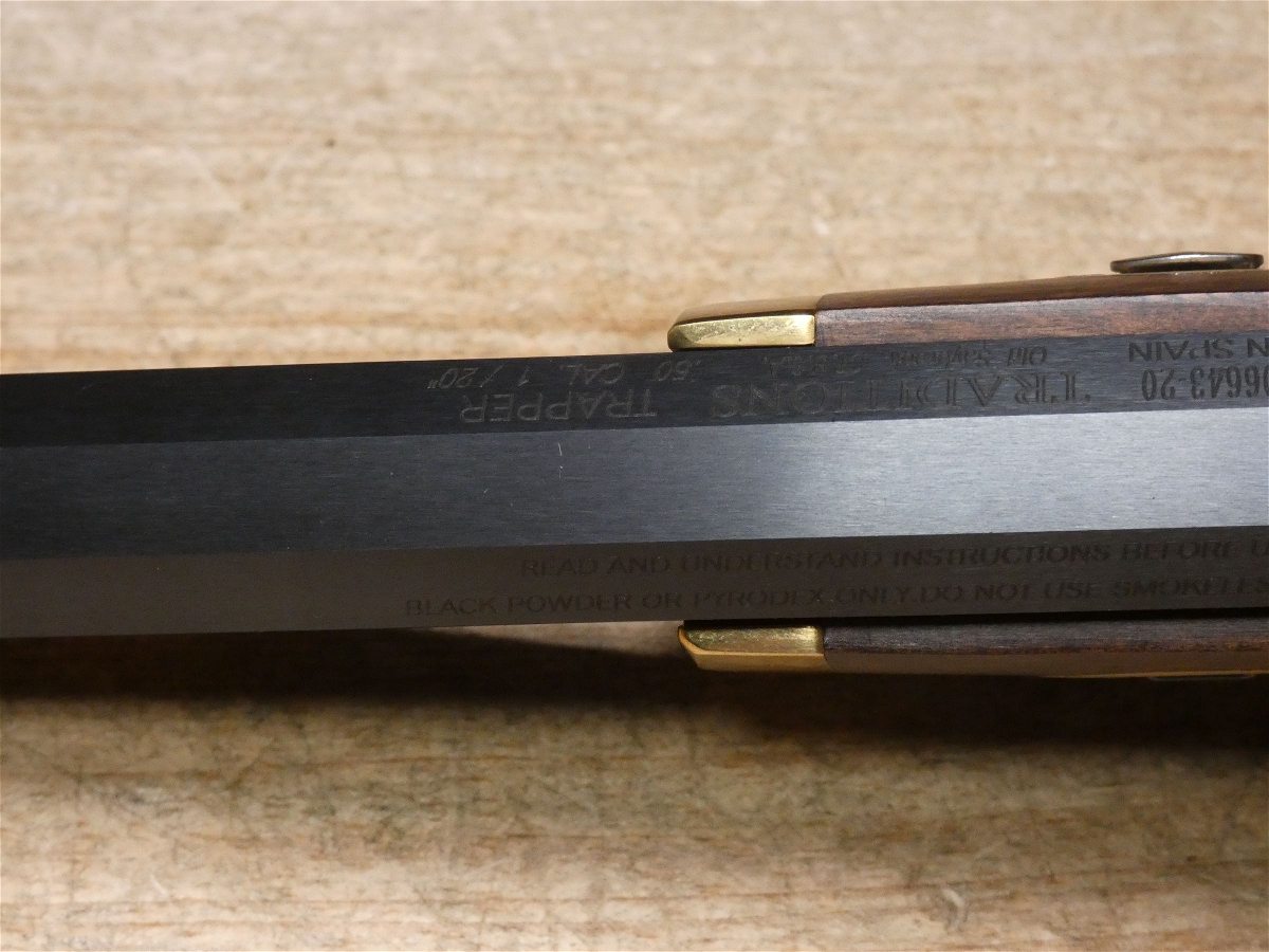 For sale is a Traditions Trapper Black Powder Pistol in .50 Cal. Serial number- 14-13-006643-20. The Traditions Trapper pistol’s primitive-style adjustable rear sight, octagonal barrel, and double-set triggers capable of firing set or unset, allows the shooter to predictably put his shots on target. This Traditions pistol is a .50 caliber percussion model.  V1-G2 Barrel Length: 9 Bore condition: Good