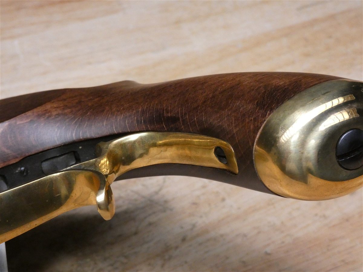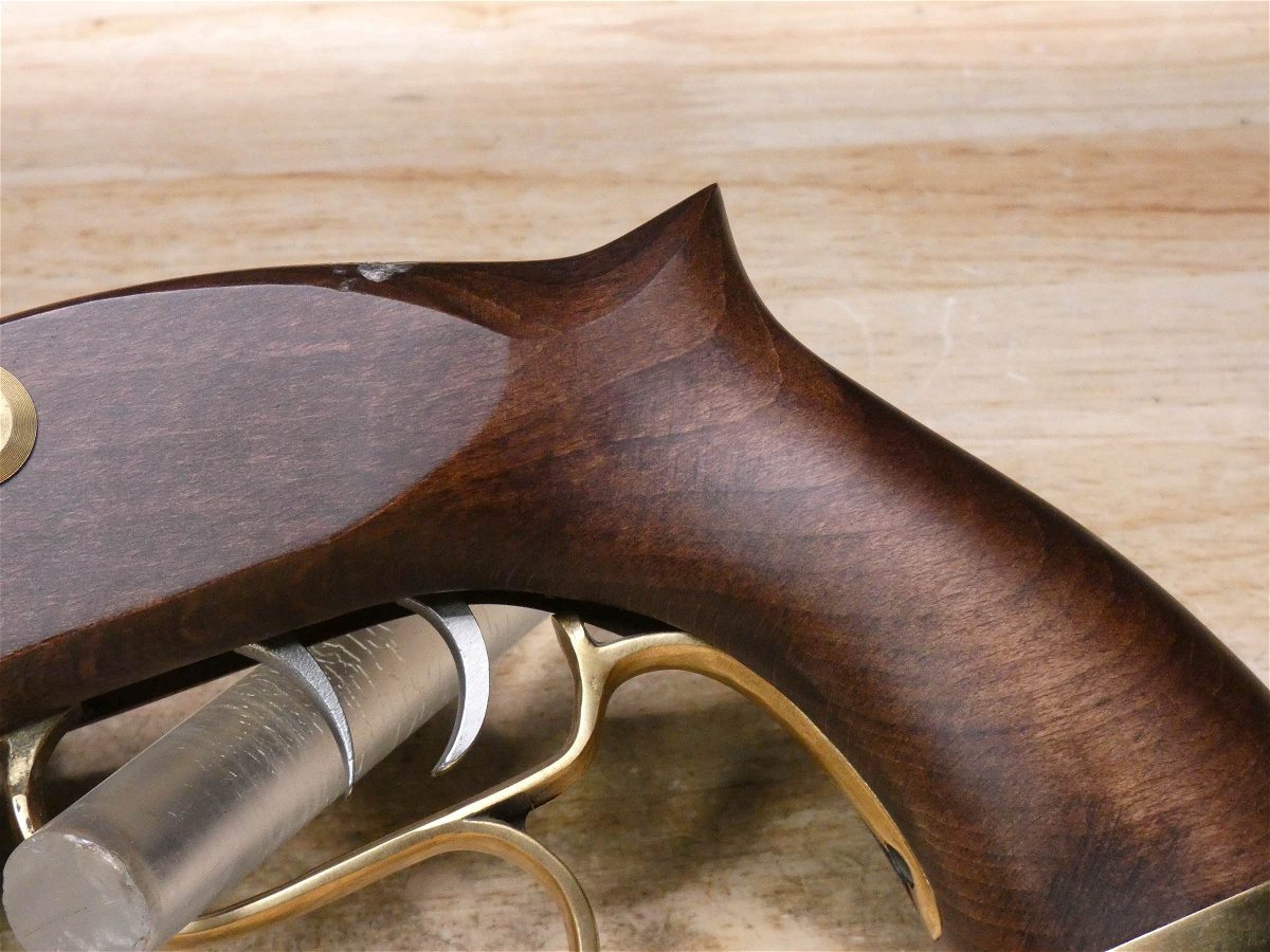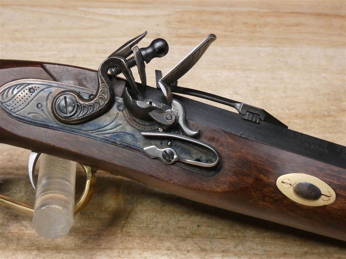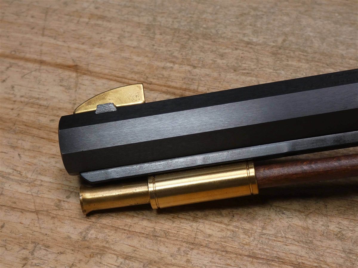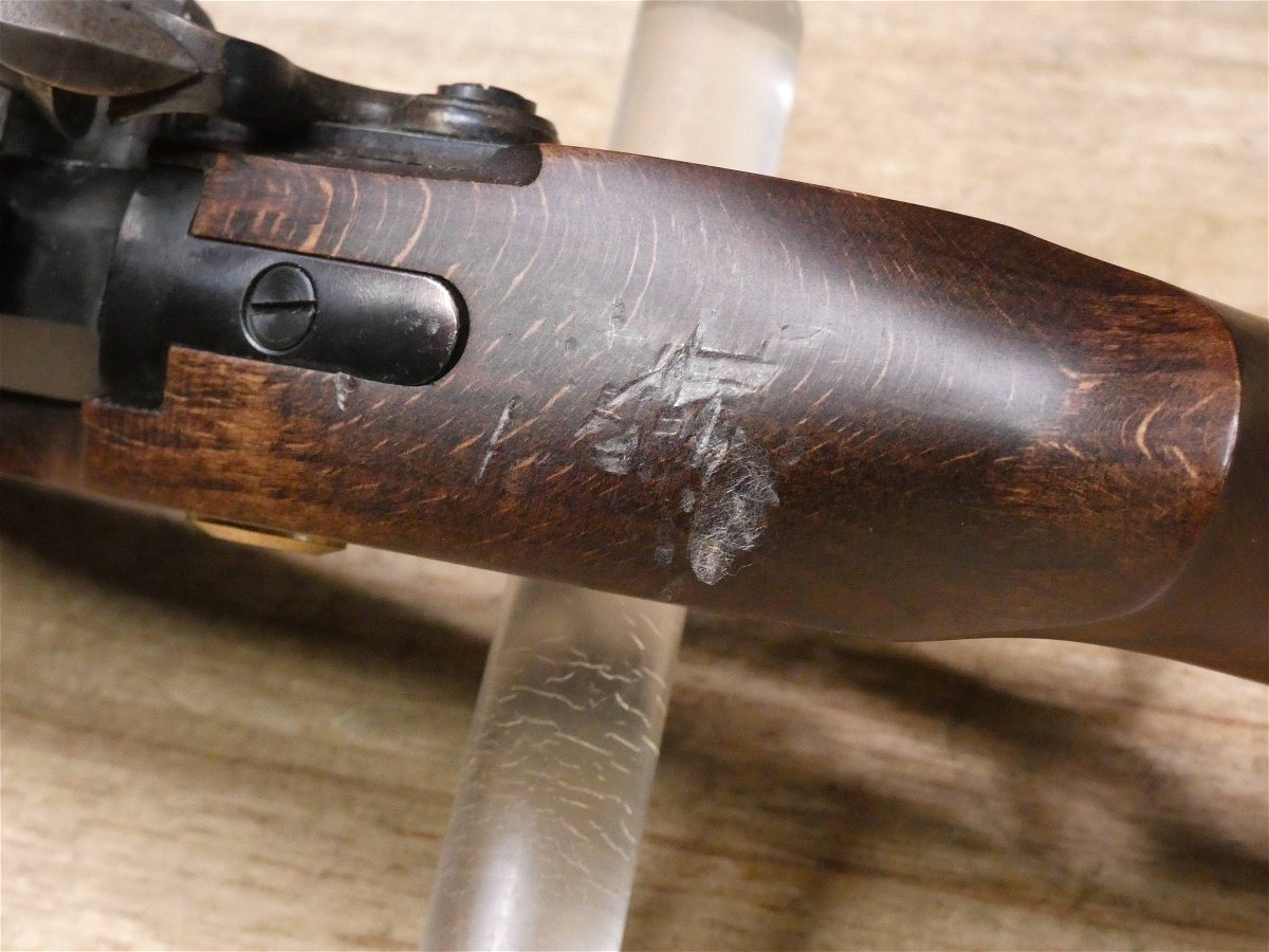 For sale is a Traditions Trapper Black Powder Pistol in .50 Cal. Serial number- 14-13-006643-20. The Traditions Trapper pistol’s primitive-style adjustable rear sight, octagonal barrel, and double-set triggers capable of firing set or unset, allows the shooter to predictably put his shots on target. This Traditions pistol is a .50 caliber percussion model.  V1-G2 Barrel Length: 9 Bore condition: Good