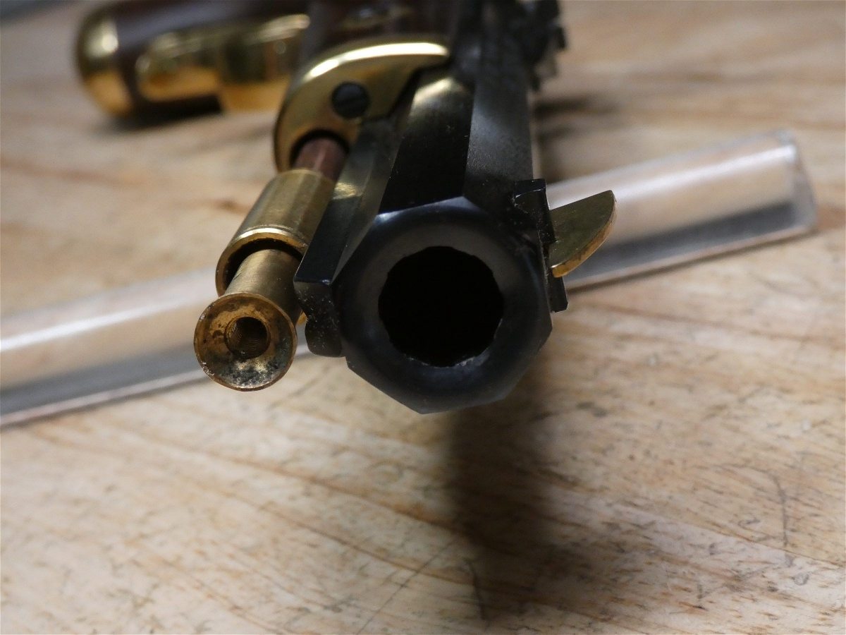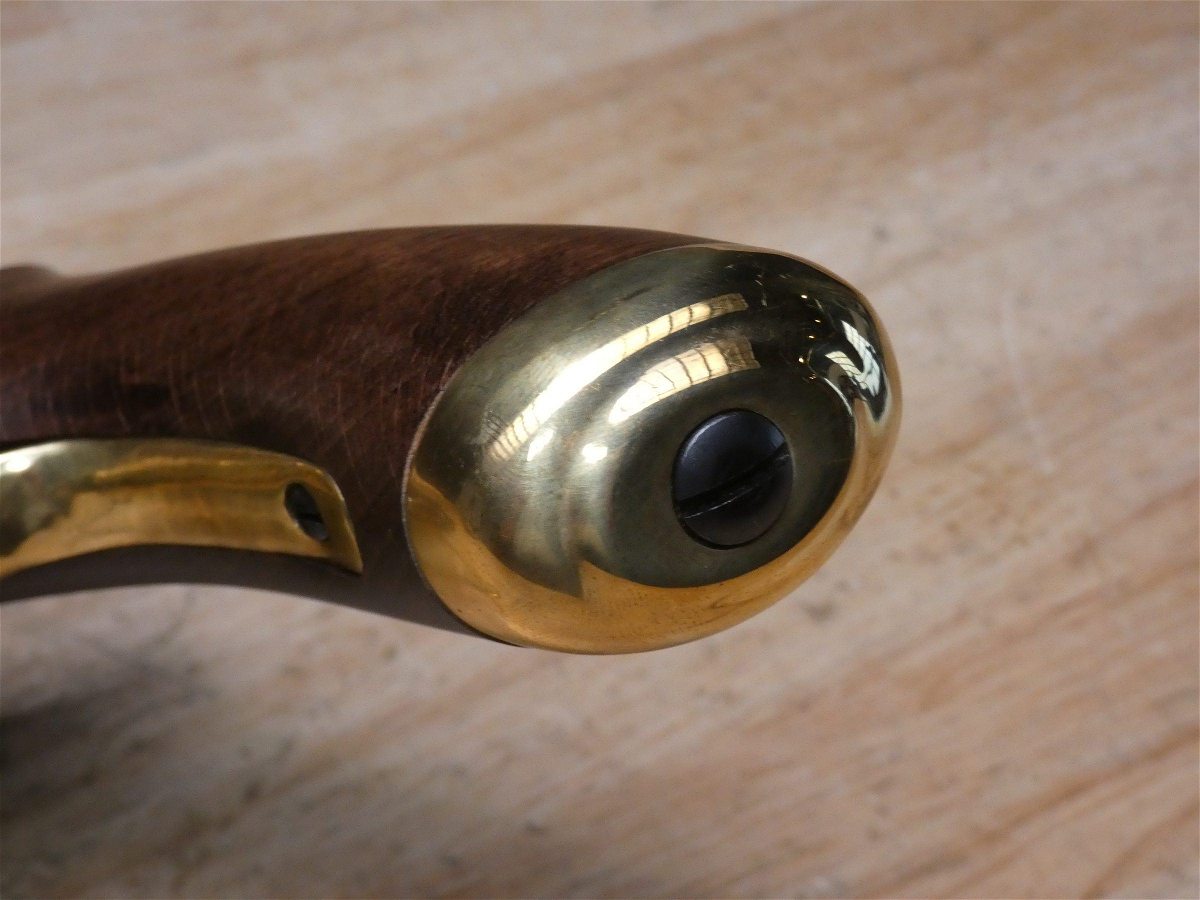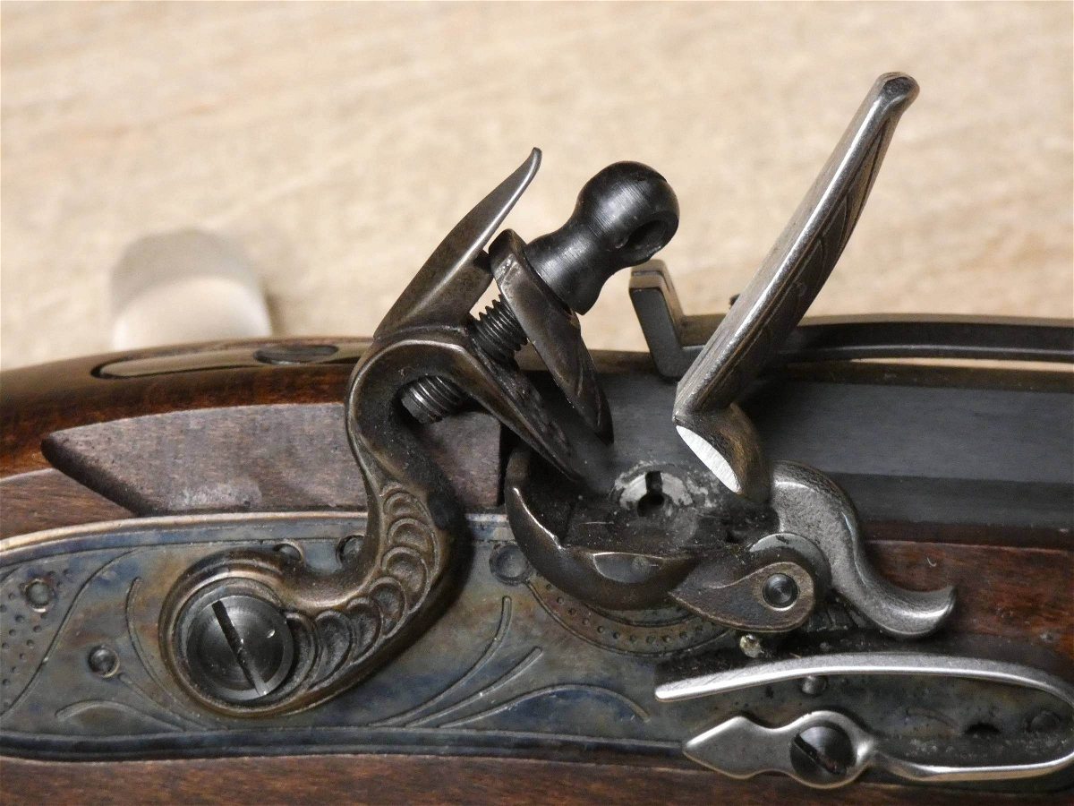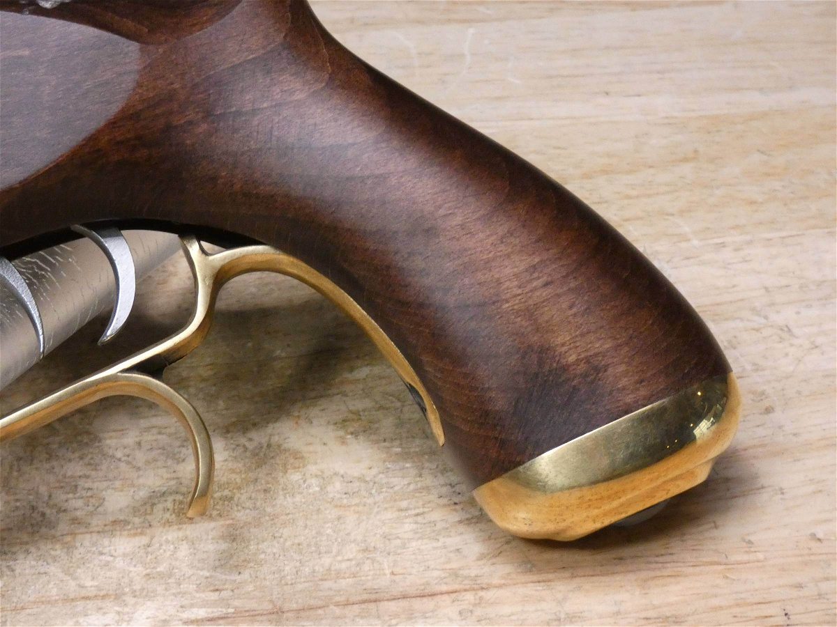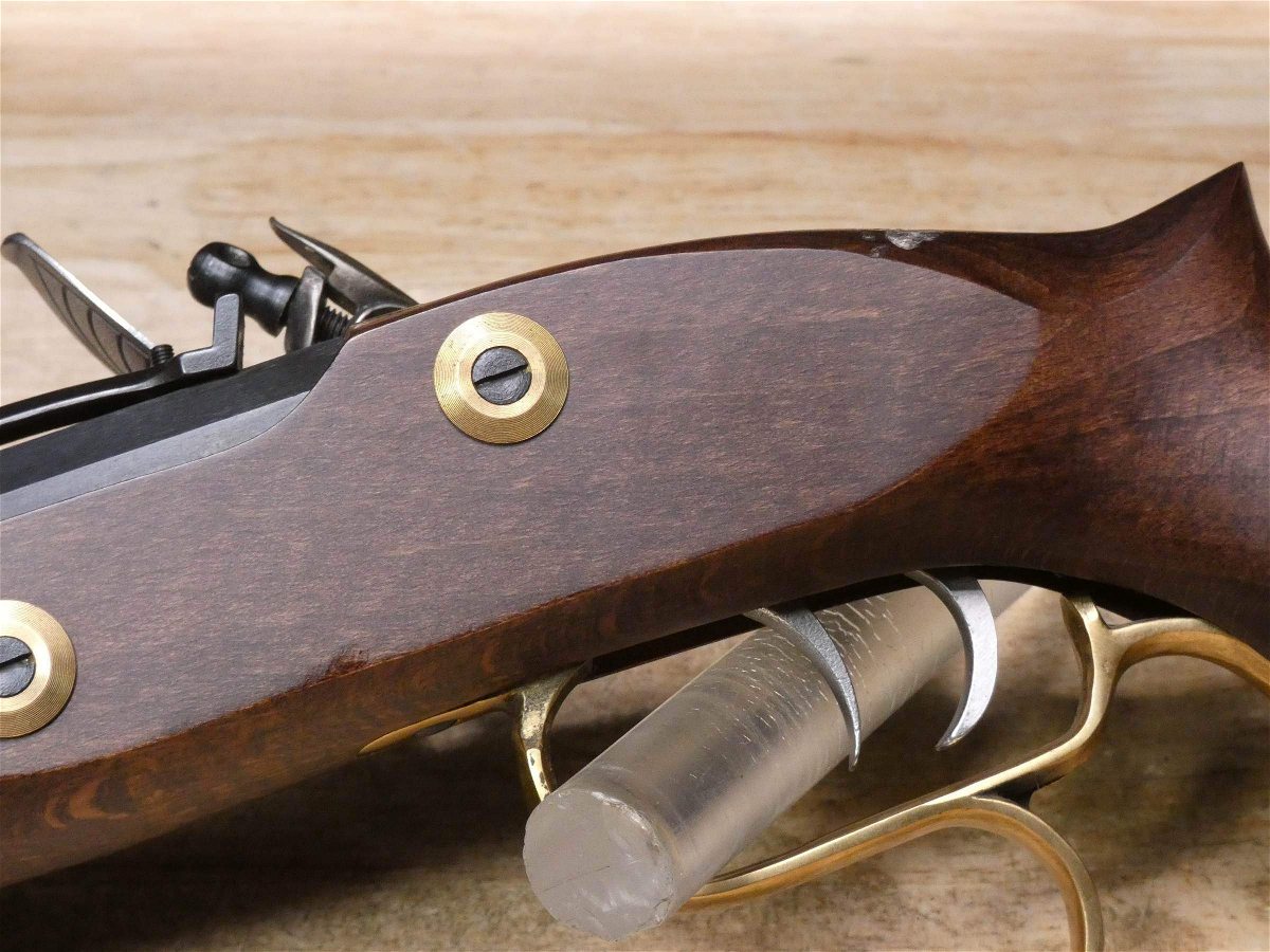 For sale is a Traditions Trapper Black Powder Pistol in .50 Cal. Serial number- 14-13-006643-20. The Traditions Trapper pistol’s primitive-style adjustable rear sight, octagonal barrel, and double-set triggers capable of firing set or unset, allows the shooter to predictably put his shots on target. This Traditions pistol is a .50 caliber percussion model.  V1-G2 Barrel Length: 9 Bore condition: Good