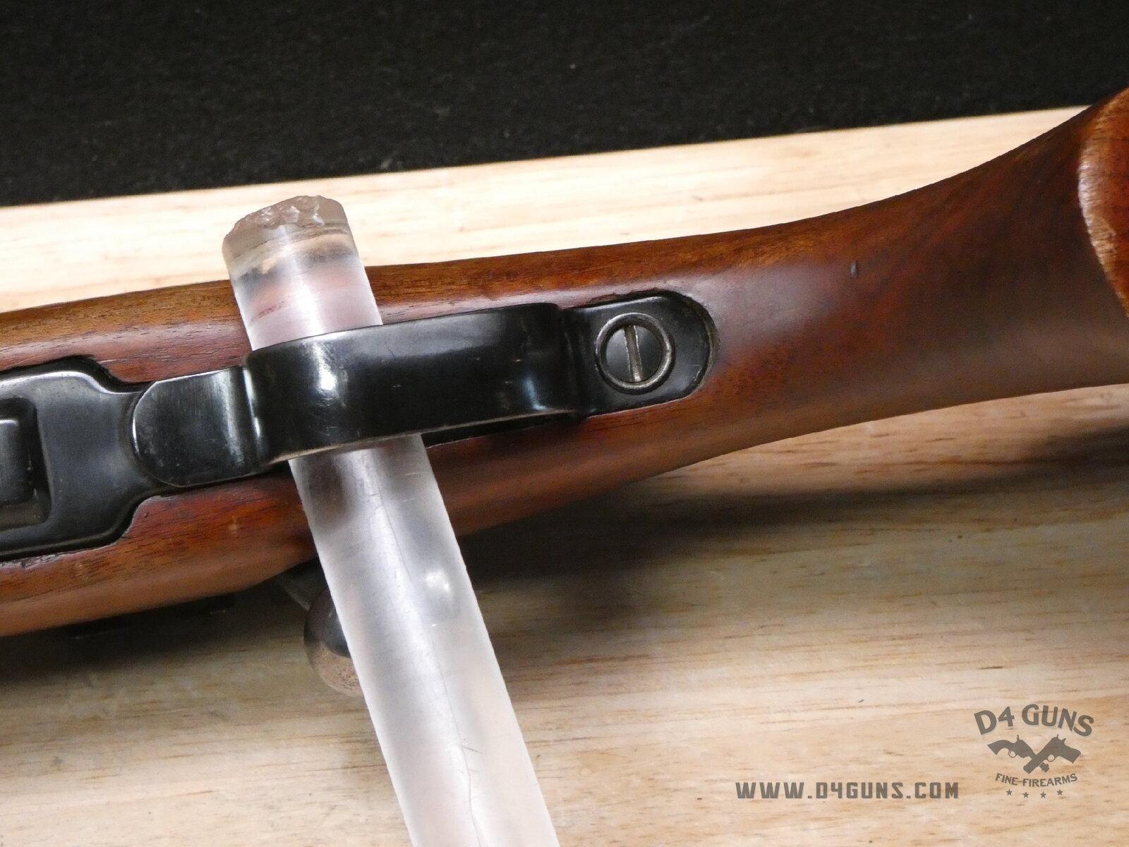 Up for grabs is a U.S. Remington Model 03-A3 bolt-action rifle in .30-06 SPRG. Serial number- 3838185. This rifle looks to have been manufactured in mid-1943 but then had the original stock replaced or modified to a sporterized version. The receiver has been drilled for rifle scope bases and the bases are included with the rifle. Also includes a nice leather sling. V1-B1 Barrel Length: 25 Bore condition: Fair