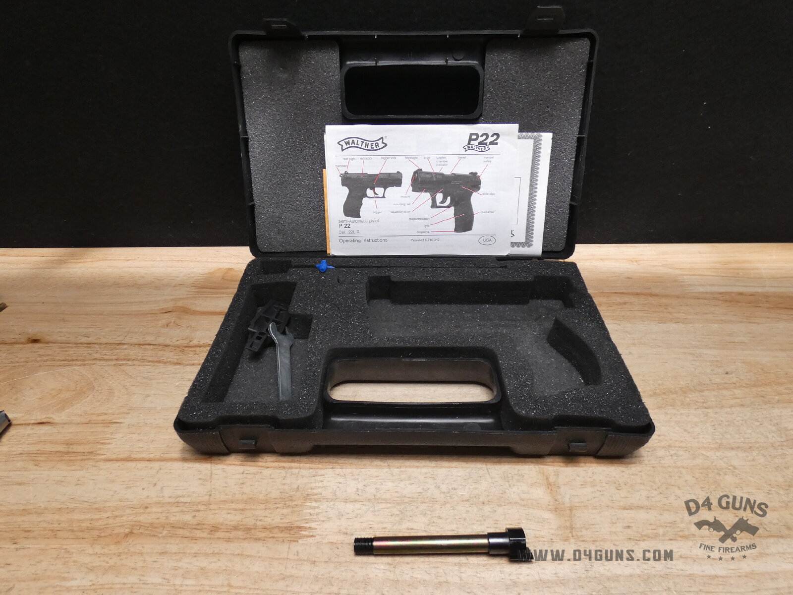 Up for grabs is a Walther P22 CA semi-automatic pistol in .22 LR. Serial number- WA071858. Mfg. 2008 in Germany. This pistol is in great condition and comes with the case, manual, and two magazines. The ergonomic design and simple operation of the Walther P22 make it a fun semi-auto rimfire pistol for plinking and informal target shooting. Includes extra threaded barrel. V2-H3 Barrel Length: 3.4 Bore condition: Fair Year Manufactured: 2008