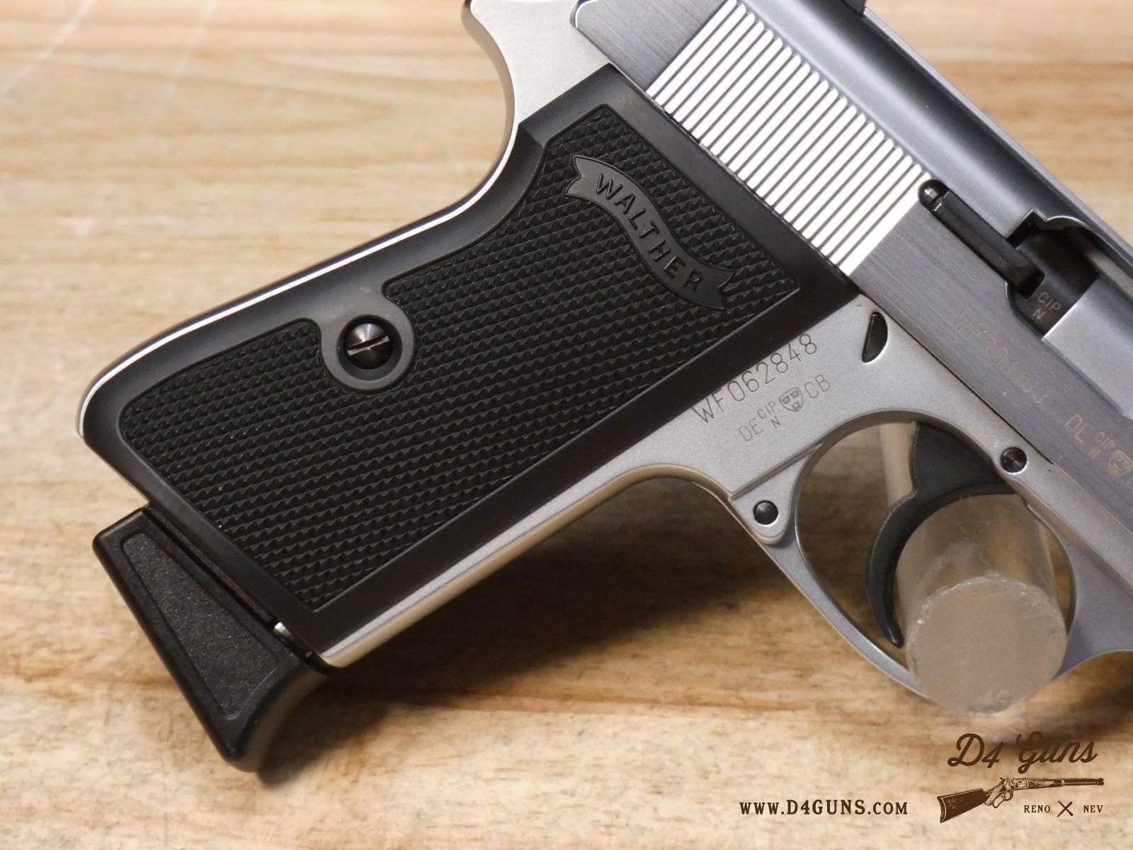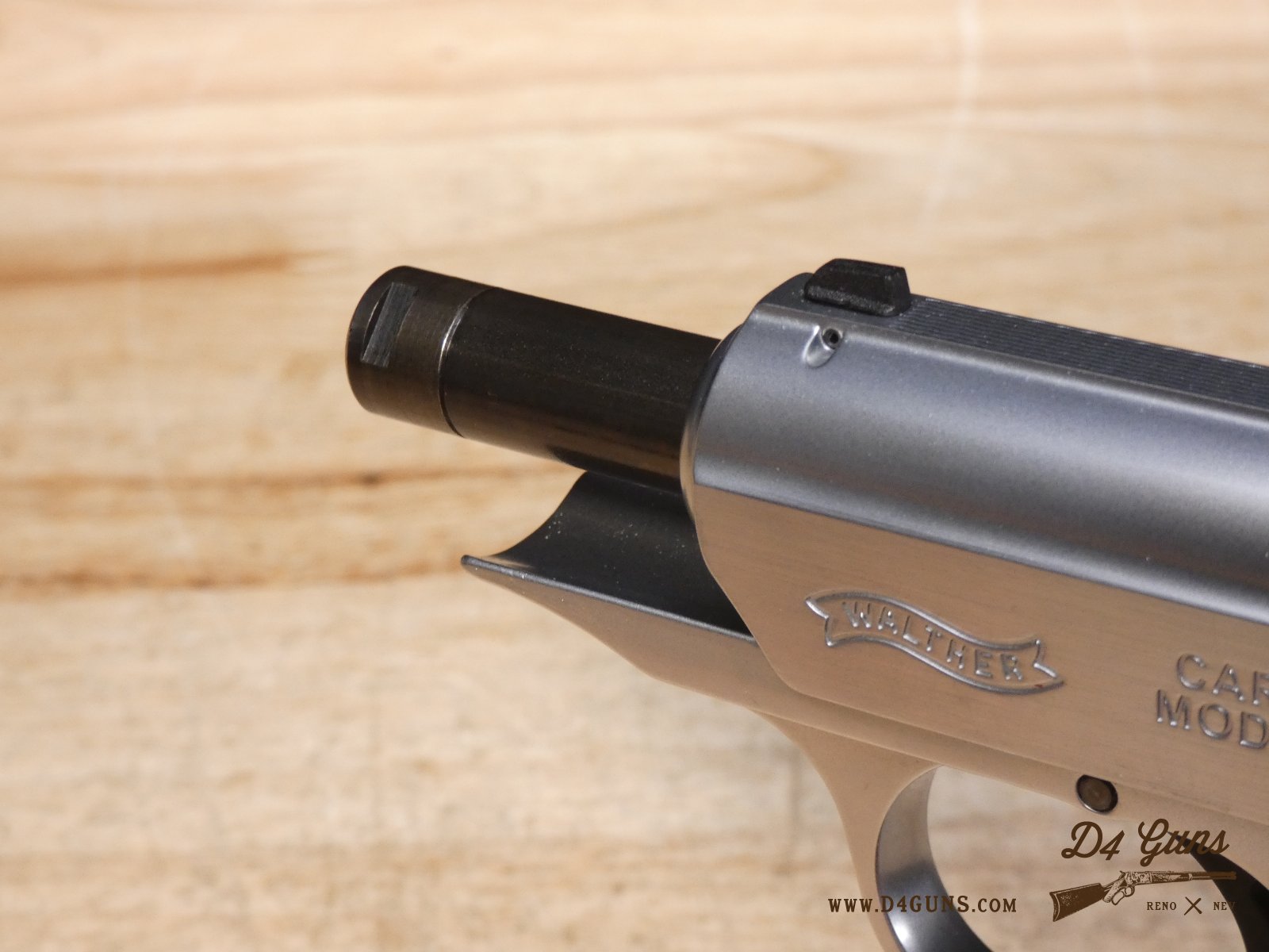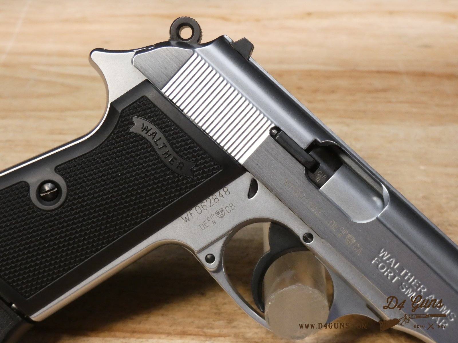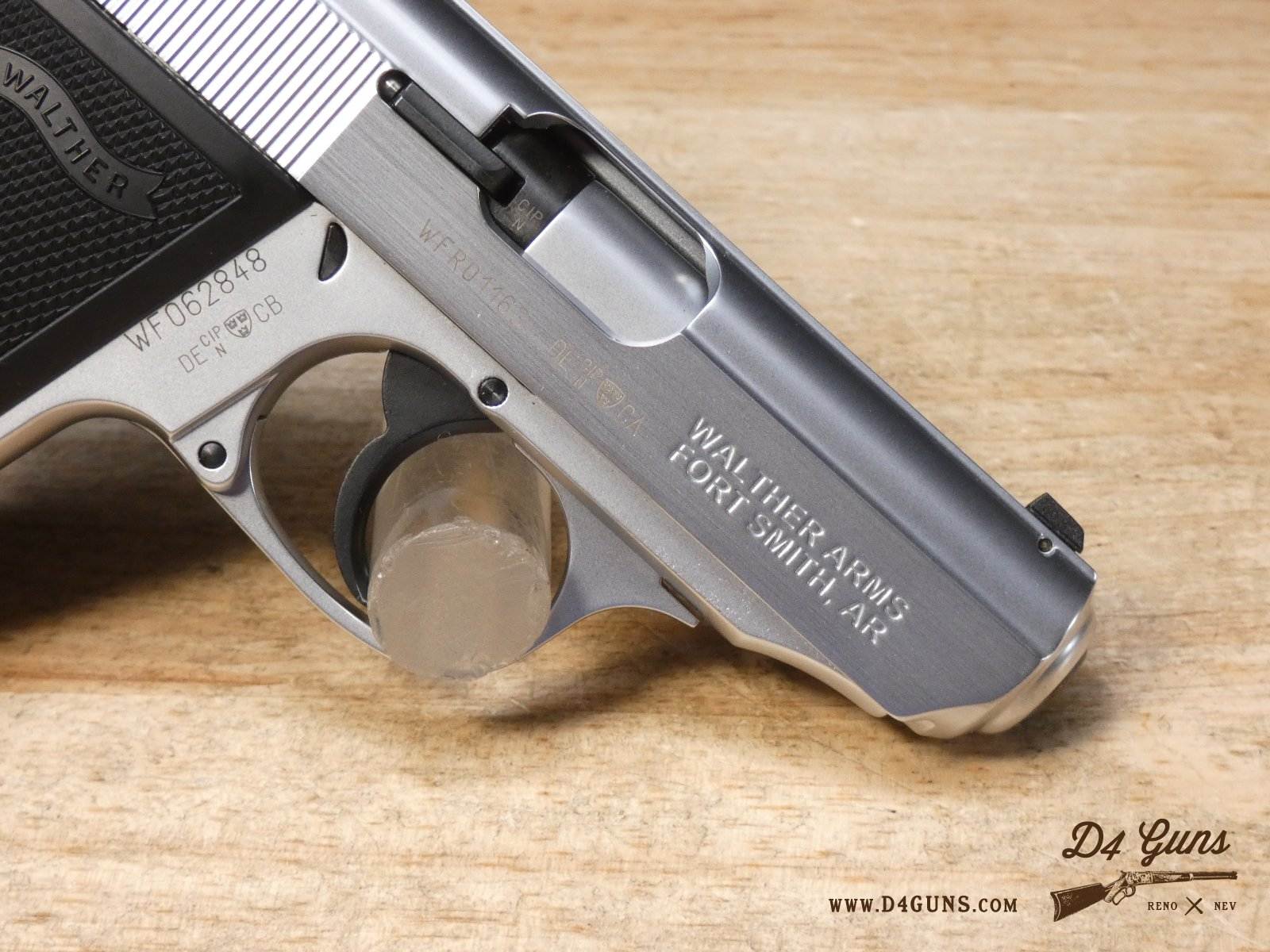 For sale is a Walther PPK/S semi-automatic pistol in .22 LR. Serial number-WF062848. This pistol is in great condition and comes with the original case, manual, cable lock, and 1 magazine. The date code of "CB" leads us to believe the pistol was manufactured in 2021. A 1-to-1 scale of the Walther PPK/S in .380, this PPK/S .22 LR affords you the look, style, and feel of the original in a rimfire caliber. Equipped with a single-action/double-action trigger, black checkered grips and functional safety/decocker, the PPK/S .22 is the perfect recreational firearm for any situation. This rimfire pistol also comes with a threaded barrel direct from the factory, making it suppressor-ready out of the box. This particular firearm appears to have had warranty work performed by Walther. See photo of invoice for details. V2-J1 Barrel Length: 3.25 Bore condition: Excellent Year Manufactured: 2021