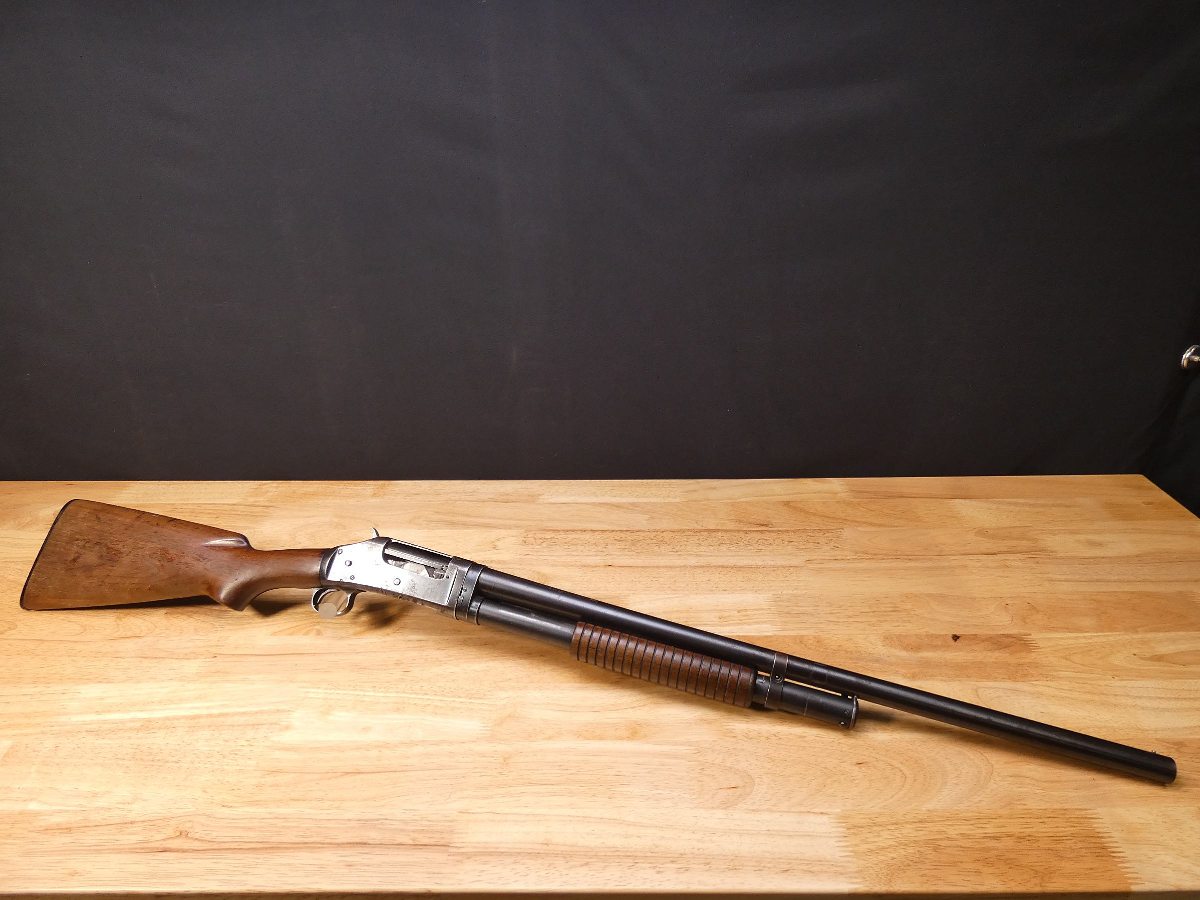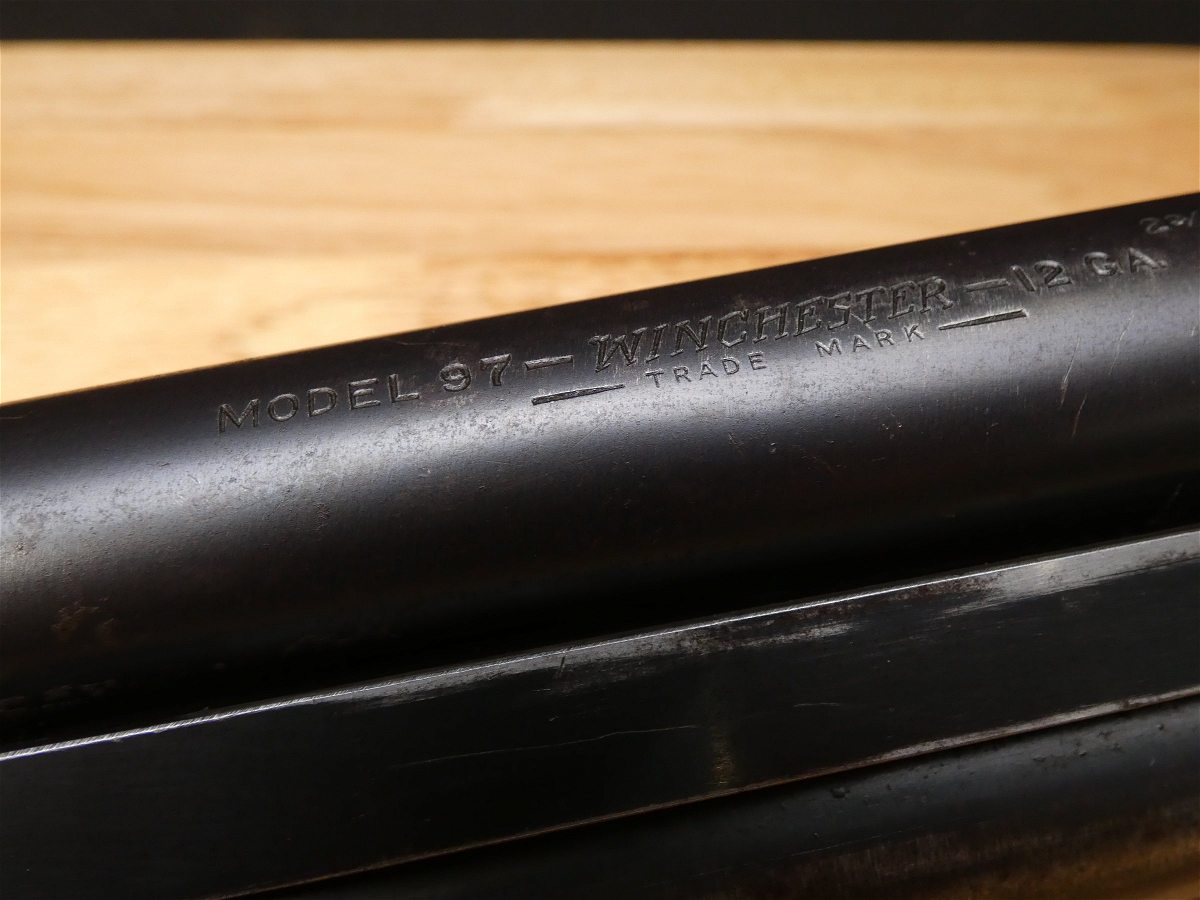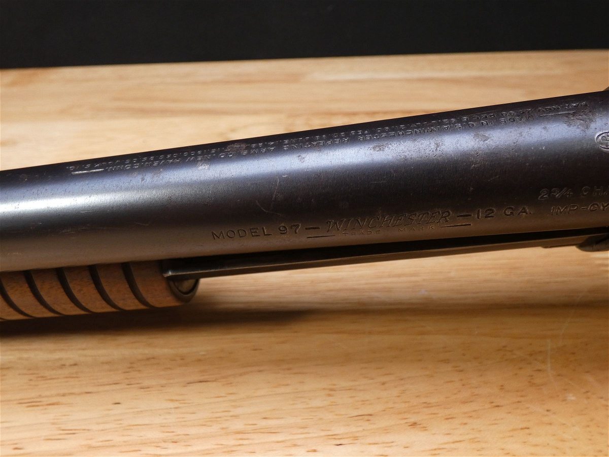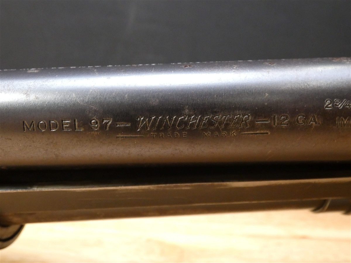 For sale is a Winchester Model 97 pump-action shotgun in 12 Gauge. Serial number- E982636. Manufactured in 1948. This Model 97 features a 26" barrel with a improved cylinder choke and a 2 3/4" chamber. The Winchester Model 1897 is a legendary American shotgun designed by John Browning. The Model 1897 was a superior slide-action exposed hammer shotgun that was specifically designed for the new smokeless powder. Winchester manufactured just over one million Model 1897 shotguns, with production taking place from July 1897 to September 1957. The 1897 was used in the US military during WWI and WWII, where it became notorious for its slam firing ability. Whether in the hands of a soldier or hunter the Winchester Model 1897 has made its mark on American history. Slam fire capable!