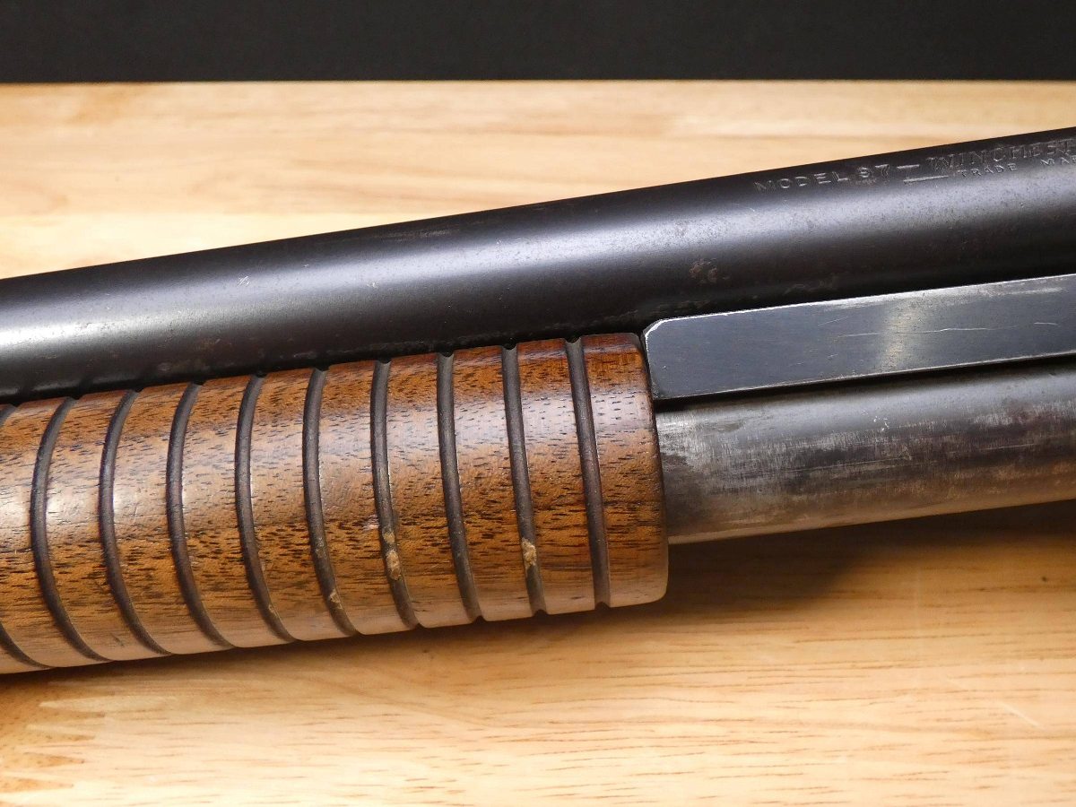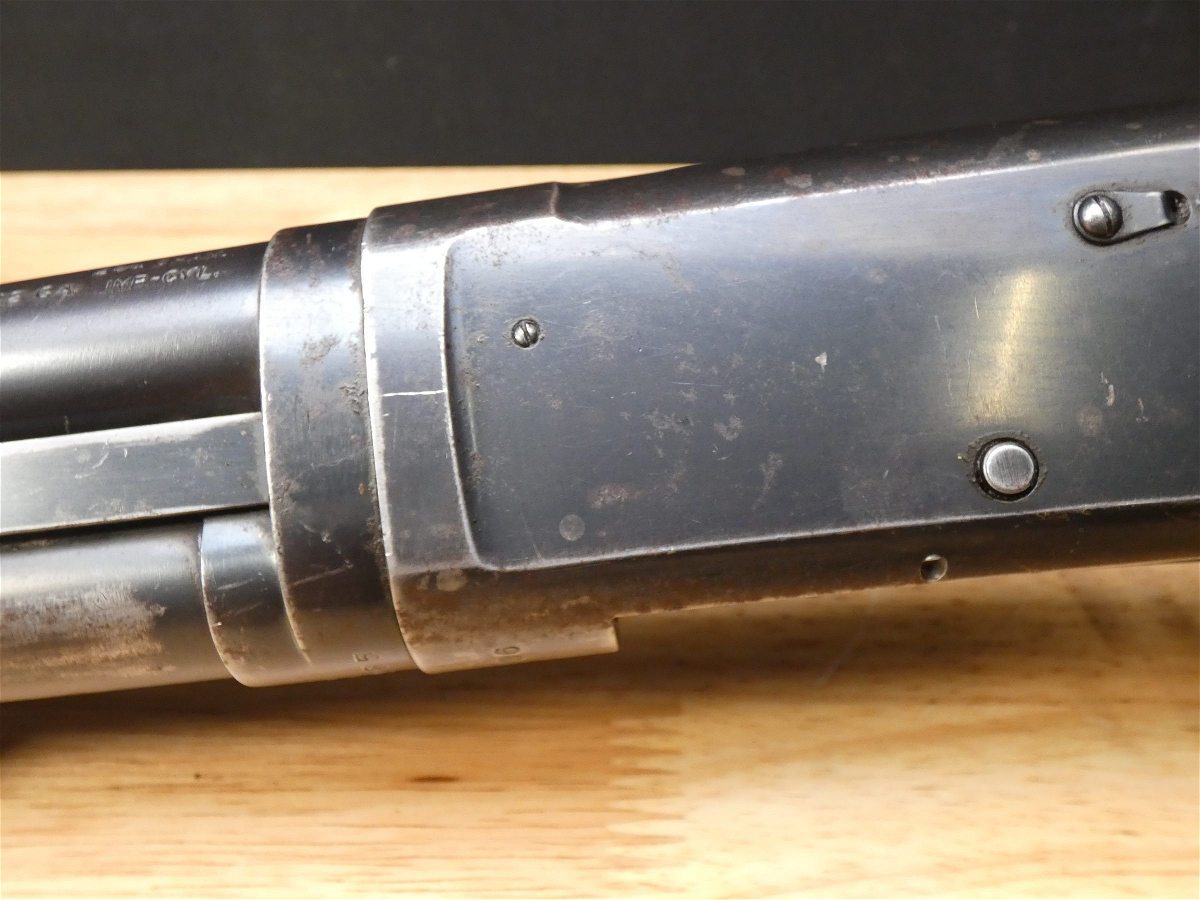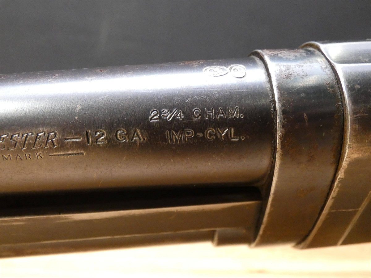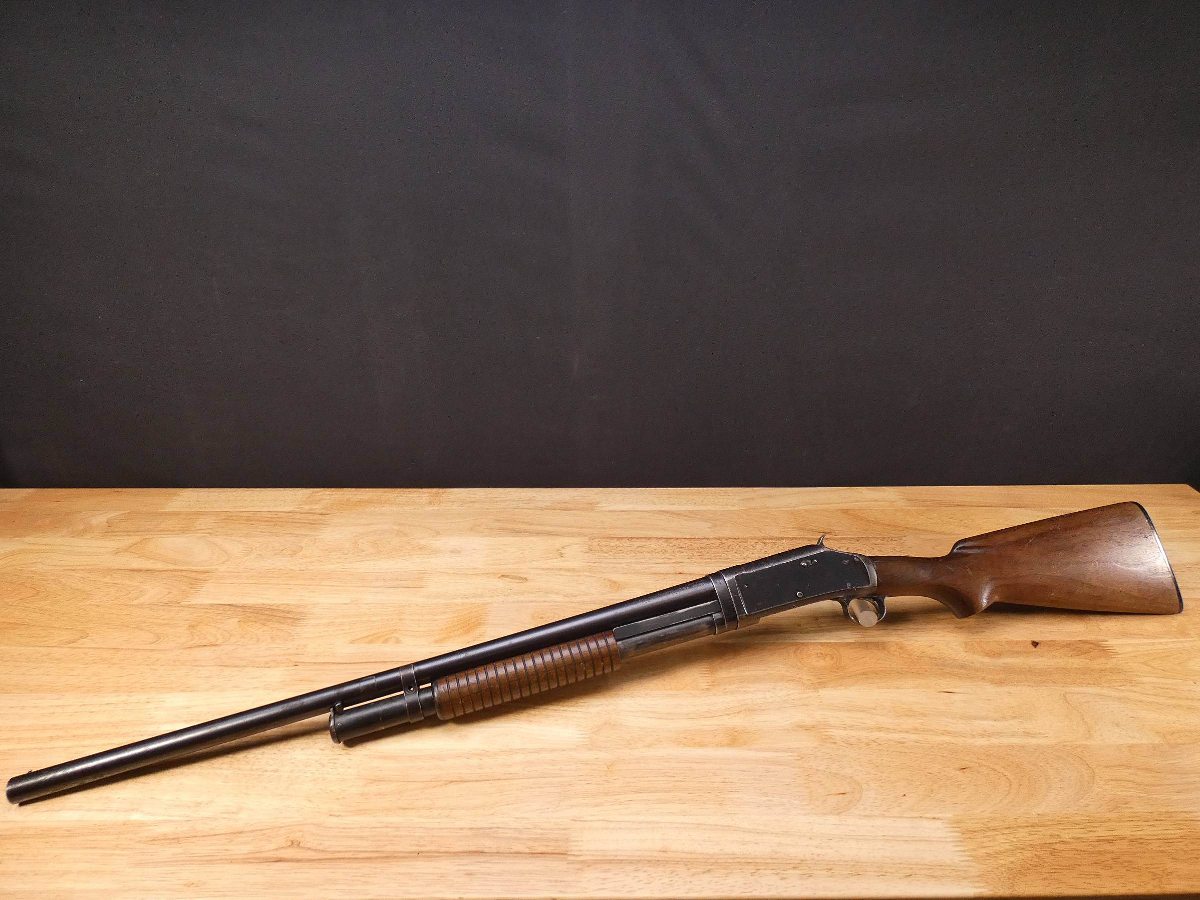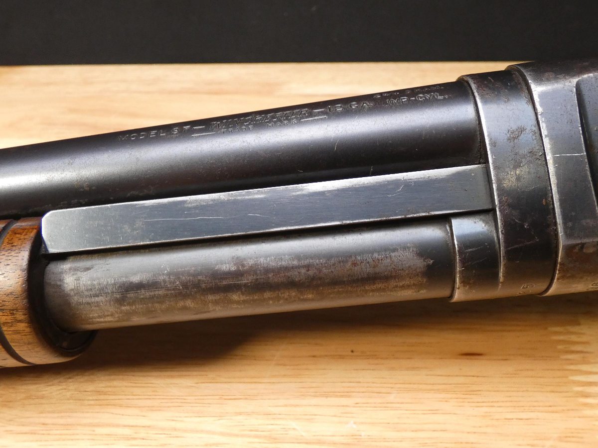 For sale is a Winchester Model 97 pump-action shotgun in 12 Gauge. Serial number- E982636. Manufactured in 1948. This Model 97 features a 26" barrel with a improved cylinder choke and a 2 3/4" chamber. The Winchester Model 1897 is a legendary American shotgun designed by John Browning. The Model 1897 was a superior slide-action exposed hammer shotgun that was specifically designed for the new smokeless powder. Winchester manufactured just over one million Model 1897 shotguns, with production taking place from July 1897 to September 1957. The 1897 was used in the US military during WWI and WWII, where it became notorious for its slam firing ability. Whether in the hands of a soldier or hunter the Winchester Model 1897 has made its mark on American history. Slam fire capable!