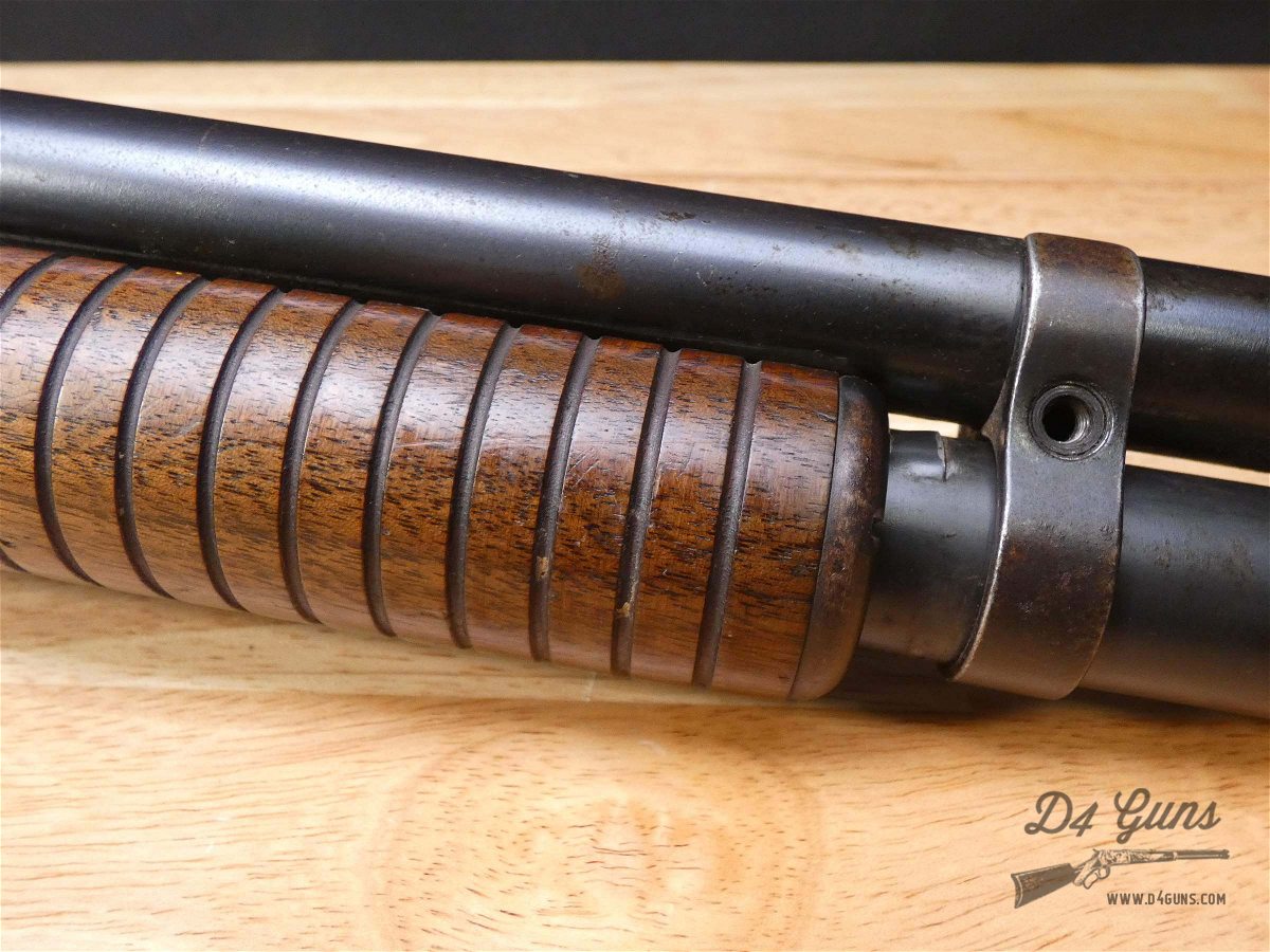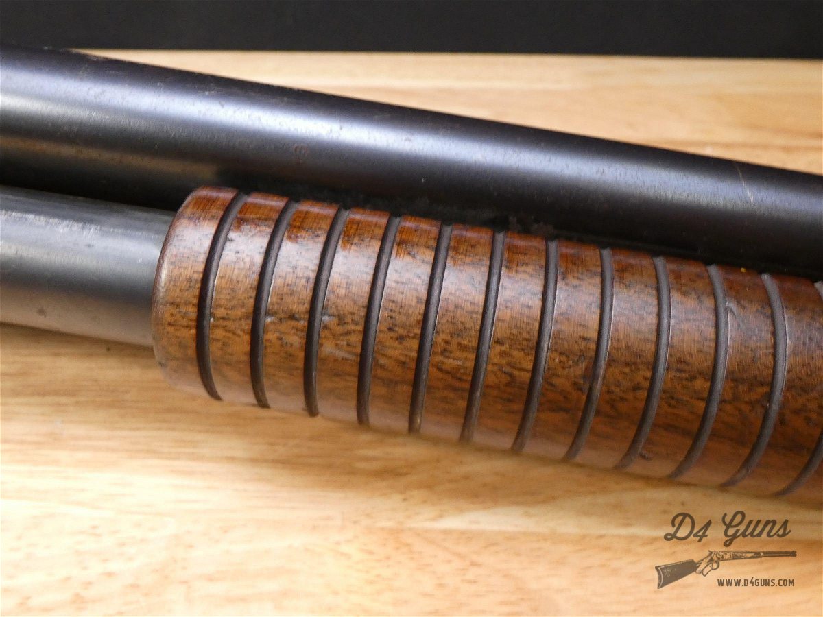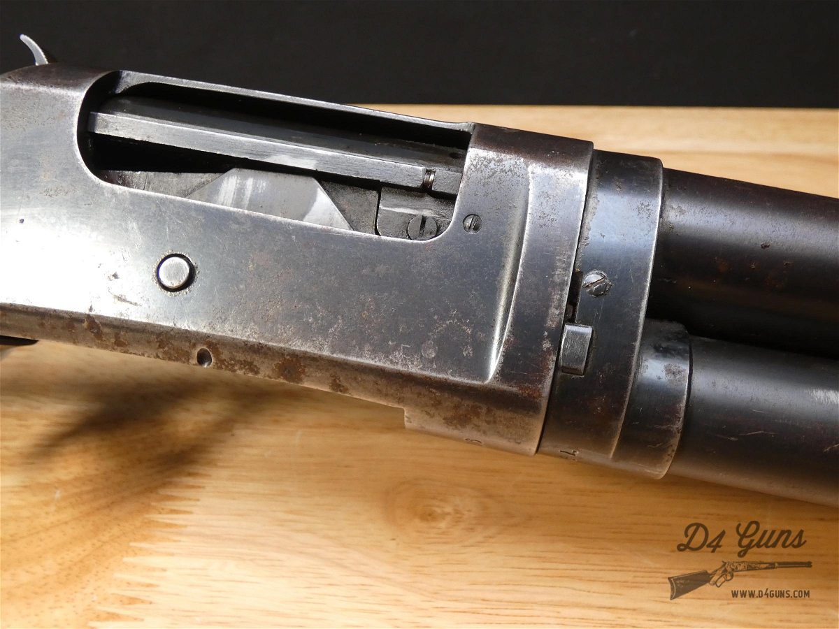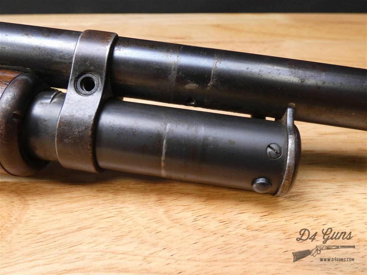 For sale is a Winchester Model 97 pump-action shotgun in 12 Gauge. Serial number- E982636. Manufactured in 1948. This Model 97 features a 26" barrel with a improved cylinder choke and a 2 3/4" chamber. The Winchester Model 1897 is a legendary American shotgun designed by John Browning. The Model 1897 was a superior slide-action exposed hammer shotgun that was specifically designed for the new smokeless powder. Winchester manufactured just over one million Model 1897 shotguns, with production taking place from July 1897 to September 1957. The 1897 was used in the US military during WWI and WWII, where it became notorious for its slam firing ability. Whether in the hands of a soldier or hunter the Winchester Model 1897 has made its mark on American history. Slam fire capable!