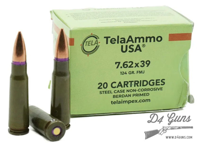 TelaAmmo 7.62x39mm 124gr Steel Cased FMJ 20 Rounds 4760167510014