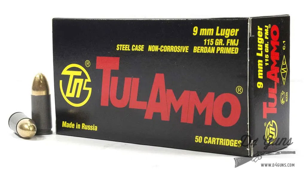 TulAmmo 9mm Luger 115gr FMJ Steel Cased 50 Rounds TA919150 814950011531